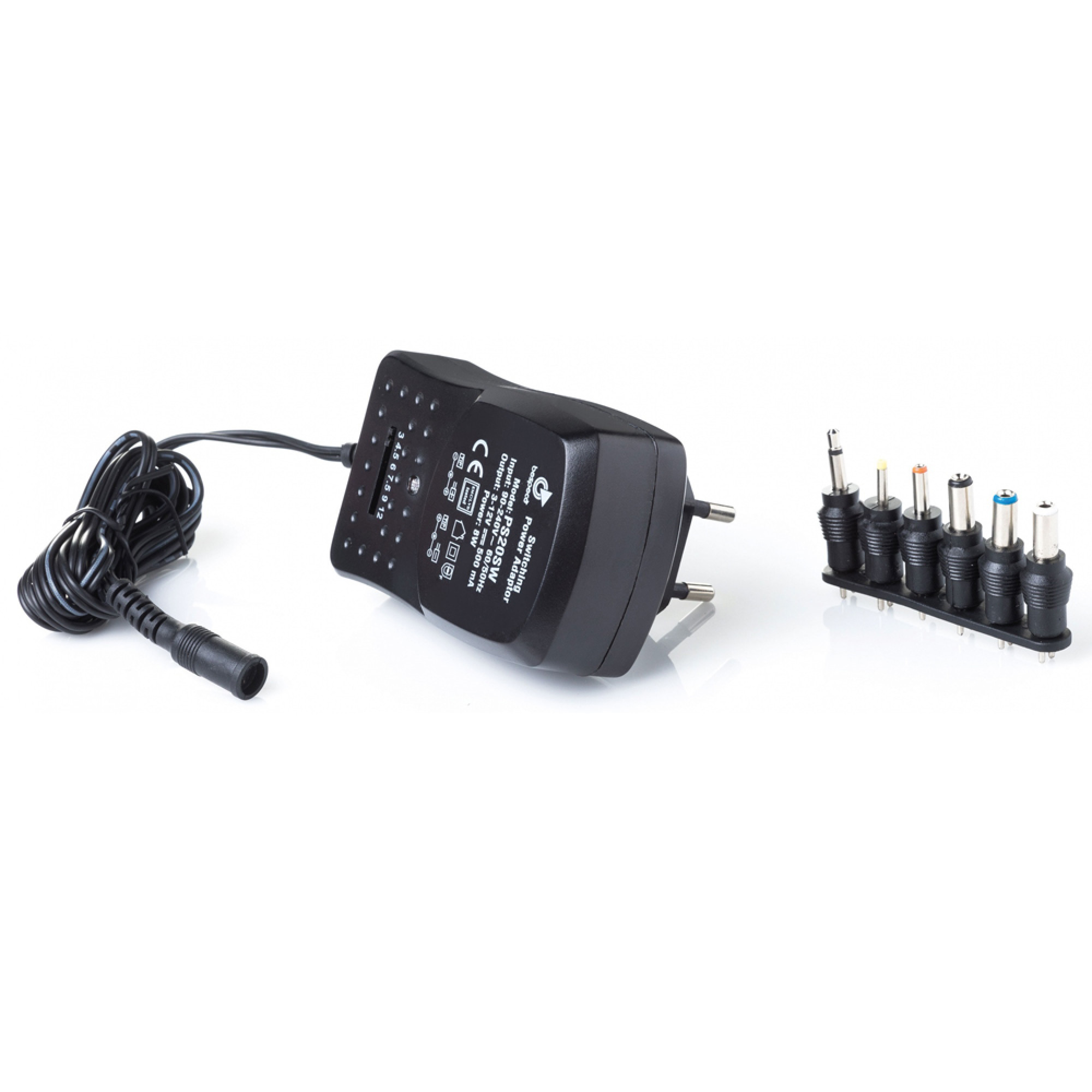 PS20SW - це високоякісний адаптер живлення на 500 мА з можливістю перемикання між постійним і змінним струмом. З можливістю авто-перемикання входу між 90-240 В, 50/60 Гц, він здатний конвертувати живлення на: 3,0; 4,5; 6,0; 7,5; 9,0 або 12 В.