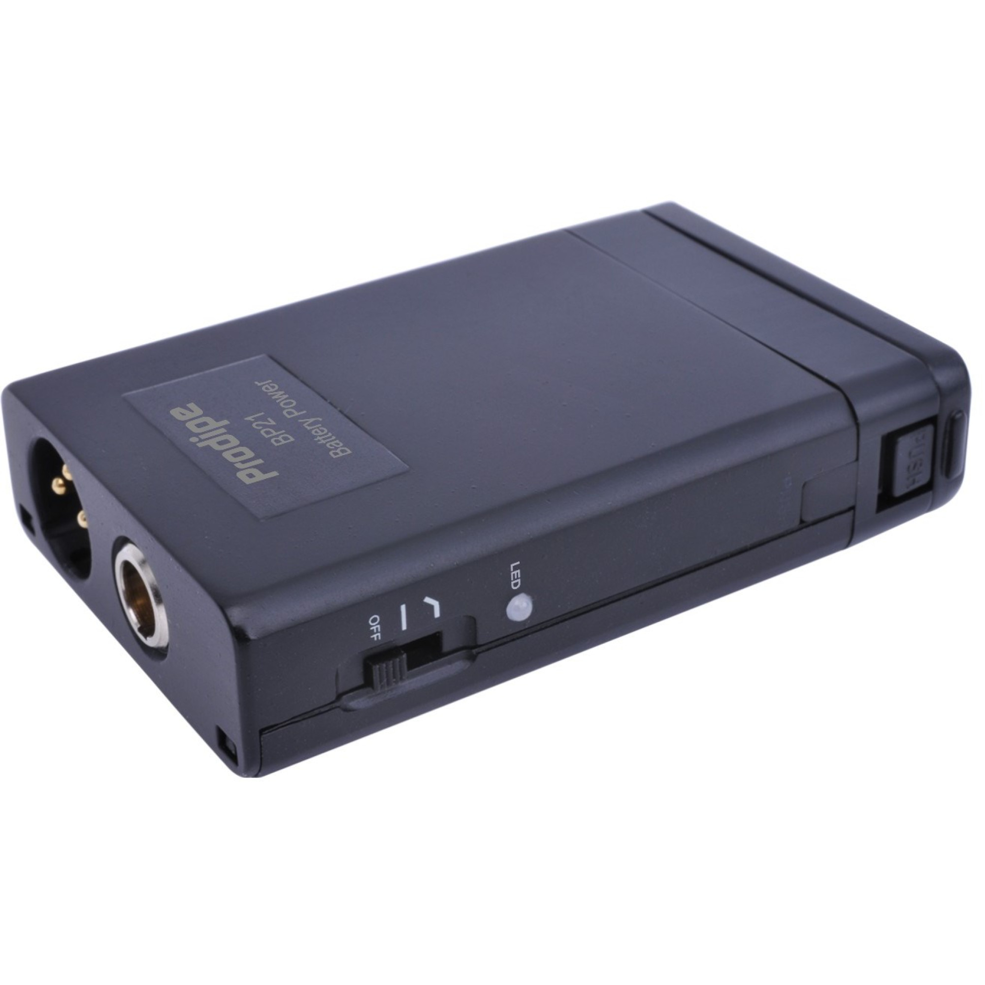 Prodipe сконструювали електронну частину BP21 таким чином, щоб гарантувати відсутність будь-яких втрат сигналу при роботі від батарейки. А при витягнутій батарейці, BP21 працює як перехідник міні-XLR - XLR для підведення живлення в 48В.