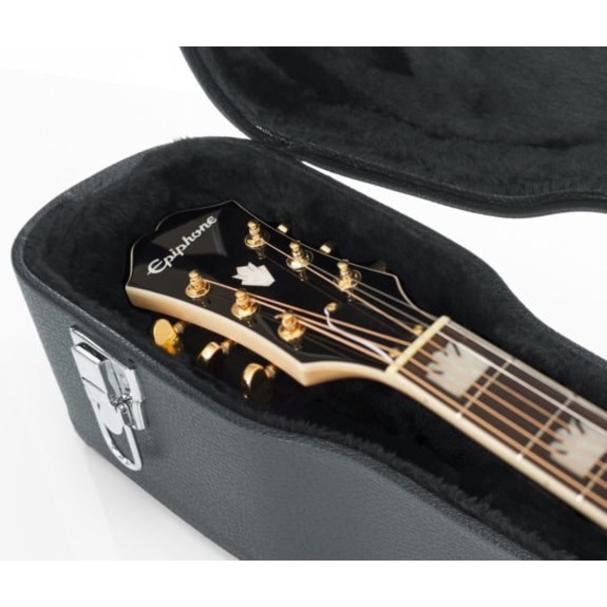 Корпус кейса виготовлений із міцної деревини, ретельно підібраної для досягнення максимальної стійкості та довговічності. Всередині розташований щільний пінний ущільнювач, покритий ніжним плисовим ворсом, який захищає лакове покриття гітари від подряпин. Додаткова підтримка грифу гарантує стабільність інструмента під час руху.