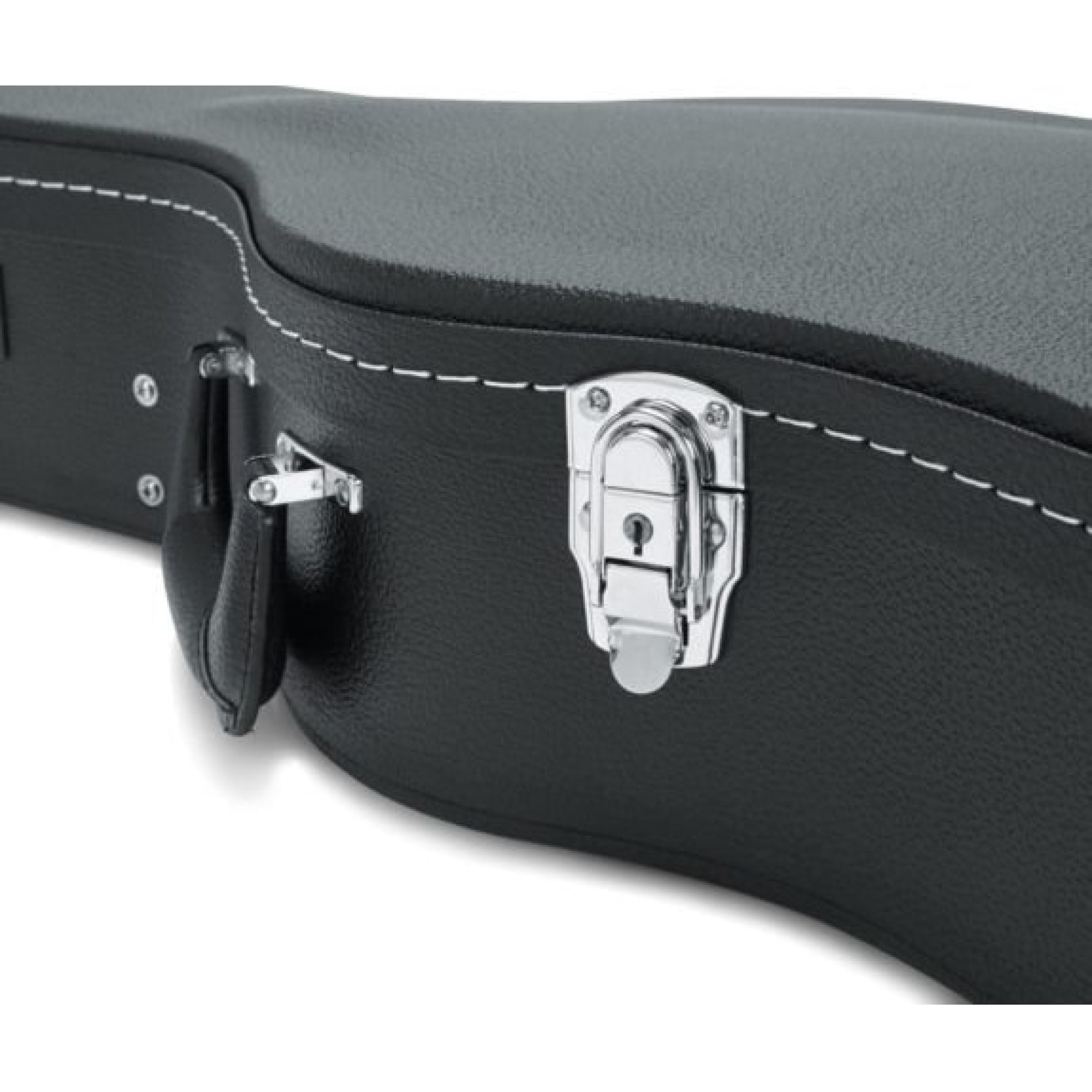 Зовнішня частина кейса оснащена високоякісною фурнітурою – потрійно хромованими замками, включно з можливістю фіксації для більшої безпеки. Посилена ергономічна ручка з наскрізним кріпленням забезпечує комфортне перенесення навіть на довгі дистанції, не перевантажуючи руку музиканта.