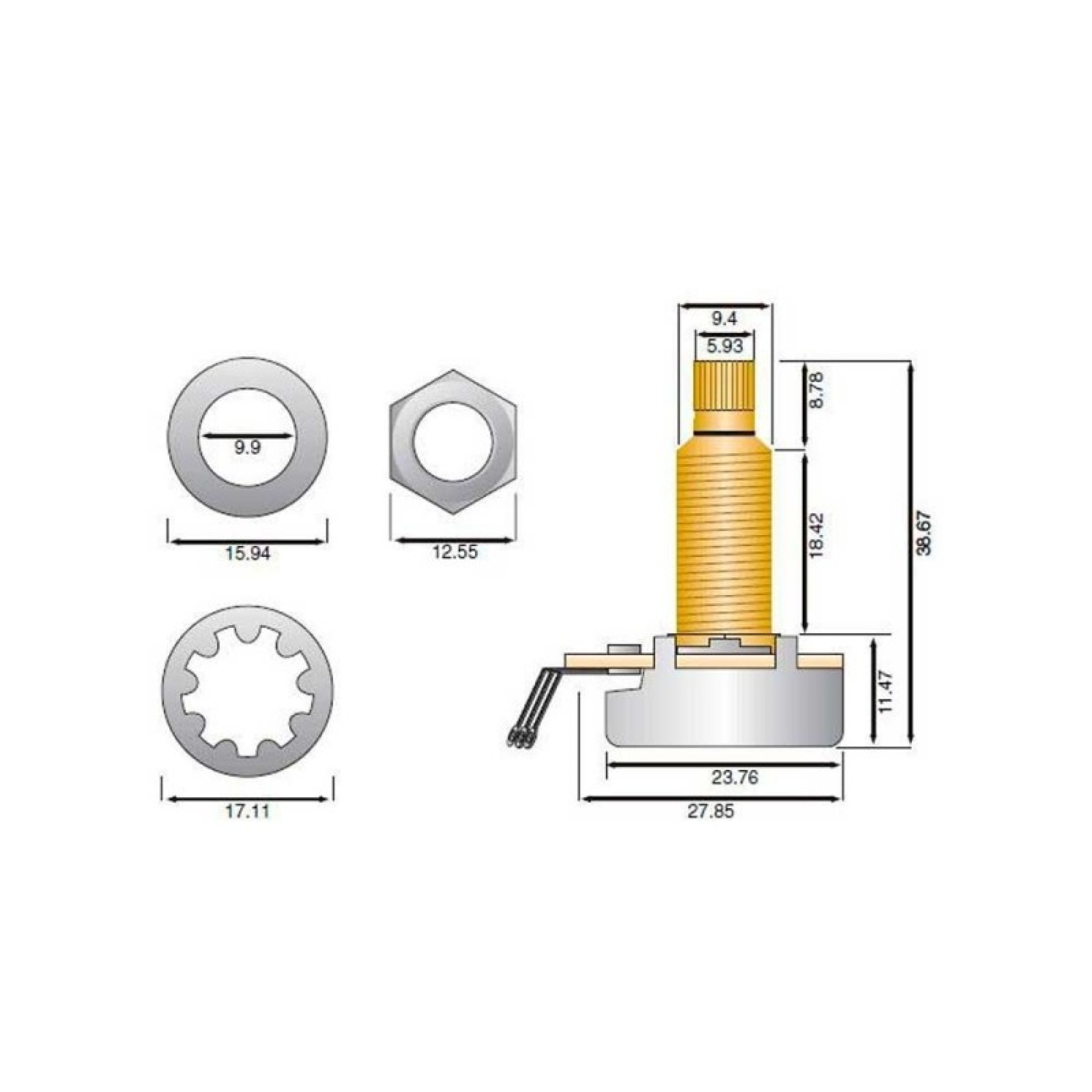 Стандартні гітарні потенціометри обмежують Вашу музичну експресію, починаючи передавати звук в позиції "3" і практично не збільшуючи його рівень вище позиції "7". Особливі потенціометри DiMarzio Custom Taper створені для того, щоб вирішити цю проблему, змінюючи рівень сигналу в точності відповідно до положення ручки. Це дозволяє музикантам отримати по-справжньому аудіофільский контроль над динамічним діапазоном інструменту і повністю контролювати кожен нюанс його гучності і гейна. І не переживайте з приводу зносу - кожен потенціометр гарантує до 10000 циклів в режимі 2000 поворотів на годину, і індивідуально перевірений на фабриці фахівцями DiMarzio.