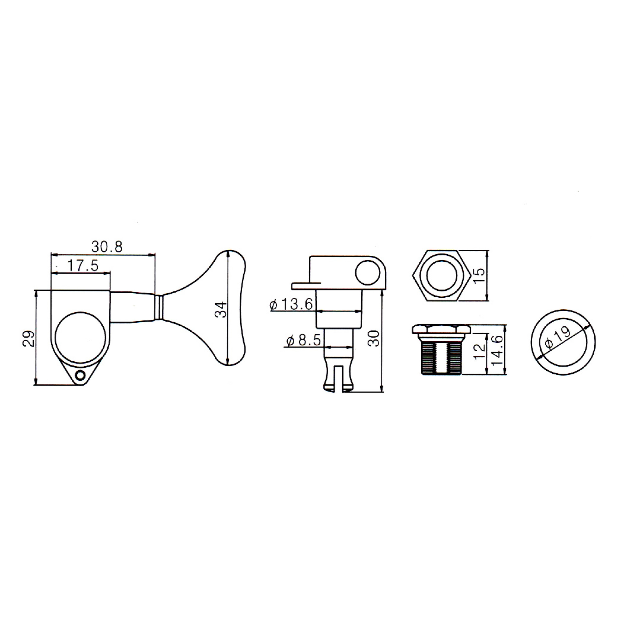 Кілки для 4стор. бас-гітари закритий тип, ставлення 1:17, трикутний наконечник, кріплення 90гр, 4 в лінію.