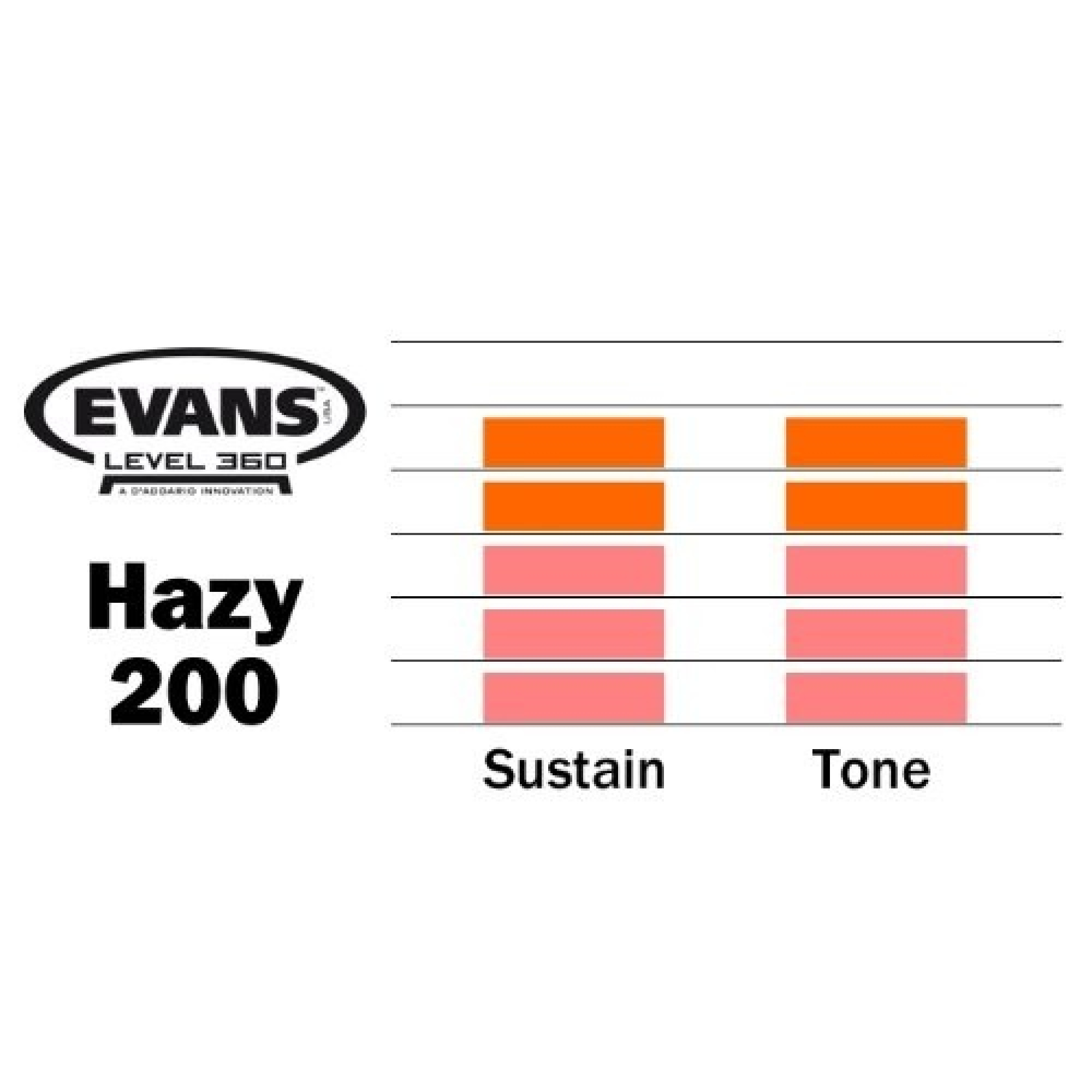 Пластик Evans™ Hazy 200 з одного шару 2mil плівки. Це найтонший, динамічніший і чутливіший резонаторний пластик зі всієї лінійки Evans. Забезпечує виняткову артикуляцію і cкорочений сустейн. Ідеально підходить для м'якої динаміки і роботи мітелкою.