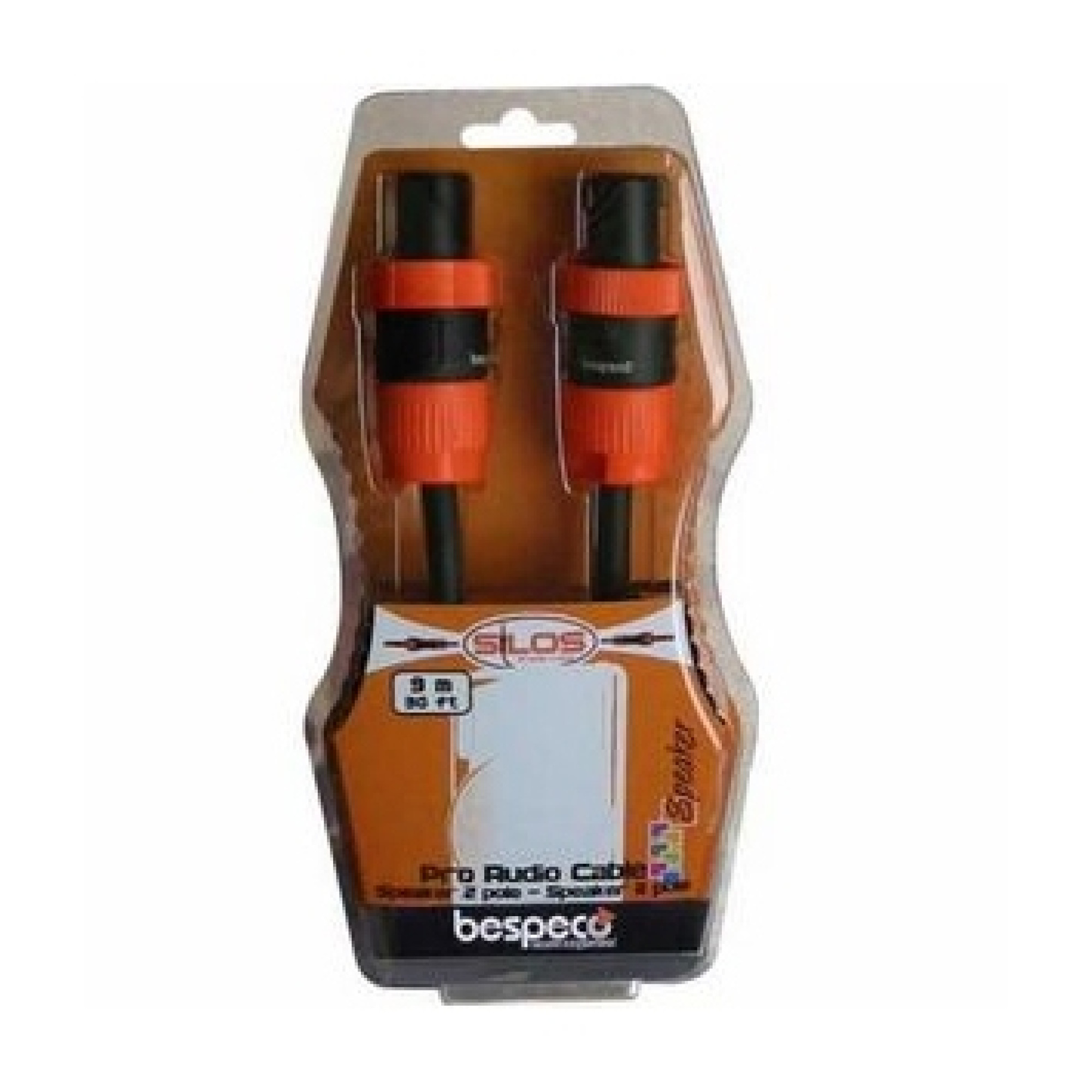 Акустичний кабель від італійського бренду Bespeco. Використовується для підключення підсилювача до пасивних акустичних систем. Складається з 2-х 2-полюсних роз'ємів типу Speakon. Довжина кабелю 9 м. Доступний колір - чорний с оранжевим.