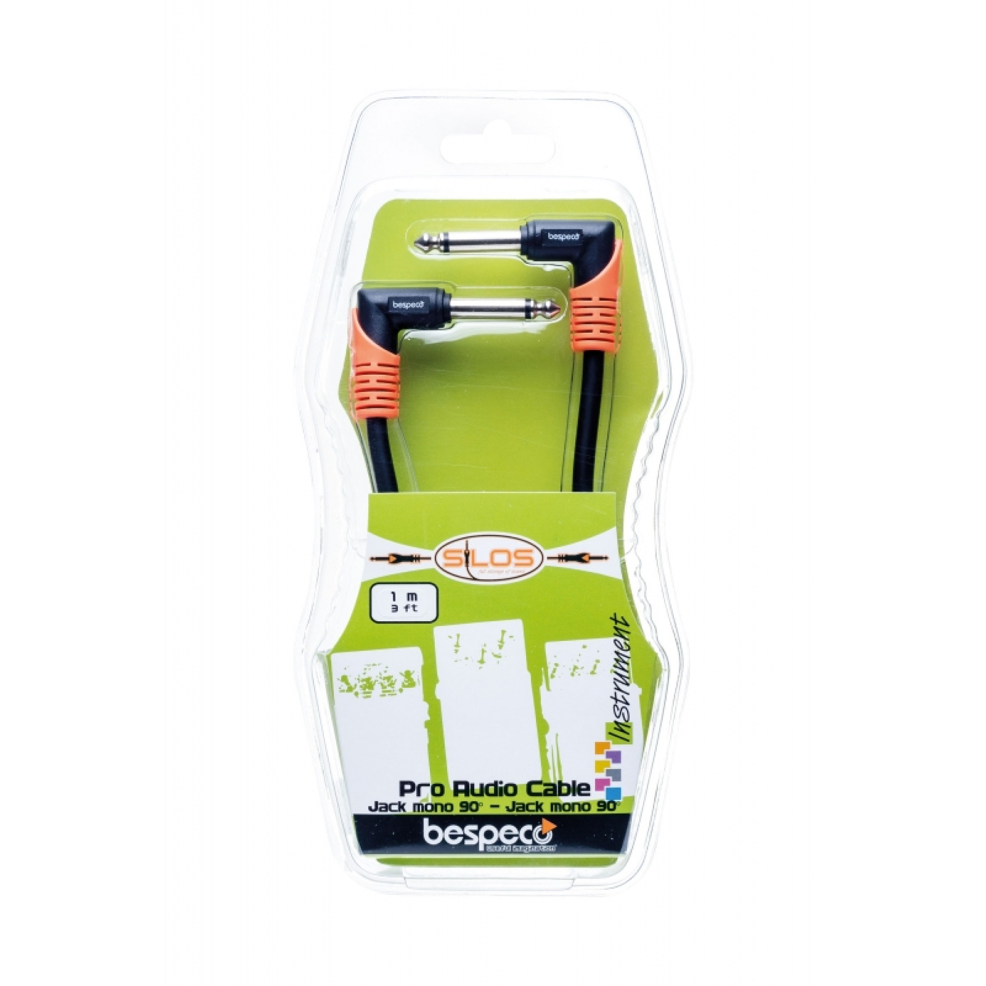 Інструментальний кабель від італійського бренду Bespeco. Використовується для з'єдання обладнання, як правило гітарних педалей, або для підключення інструментів. Кабель має два кутових роз'єми: 6,3 мм моно Jack. Довжина кабелю: 1 м. Доступний колір: чорний з оранжевим.