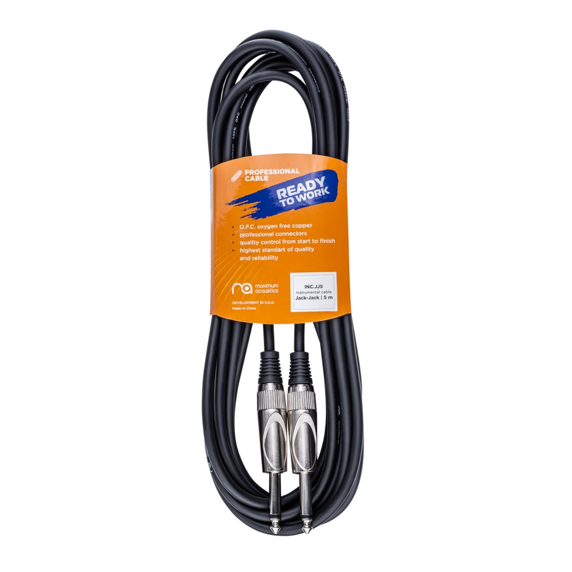 Професійний інструментальний кабель від бренду Maximum Acoustics, виготовлений з 6 мм екранованого кабелю з використанням безкисневої міді (OFC) та оснащений двома конекторами Jack Mono 6,3 мм. Дана модель має довжину кабелю 5 м. Колір кабелю чорний.