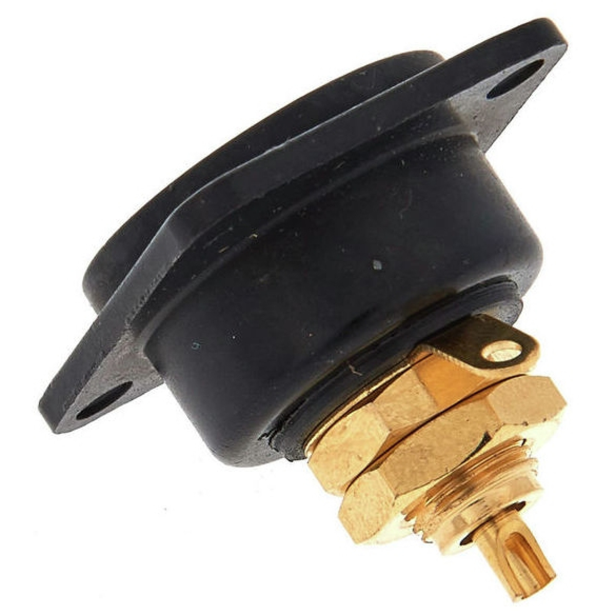 Neutrik NF2D-B-0 - Панельний роз'єм RCA, має тип-D. Підключення здійснюється пайкою. Корпус чорний нікельований. Роз'єм має позолочені контакти.