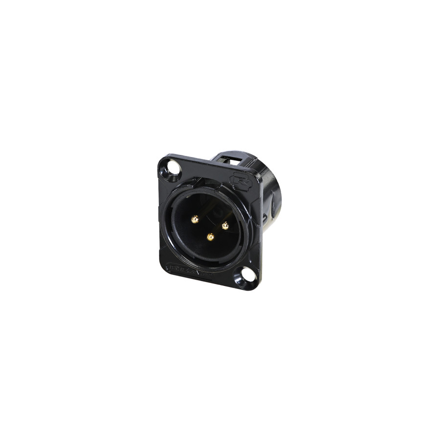 Роз'єм XLR Male Rean by Neutrik RC3MDL-B призначений для професійного використання у звуковому обладнанні. Він має чорний корпус з фланцем типу D і сталевим замком, що забезпечує надійне кріплення. Контакти роз'єму під пайку мають золоте покриття, завдяки чому дозволяють досягти високої якості звукового сигналу та стійкі до корозії.