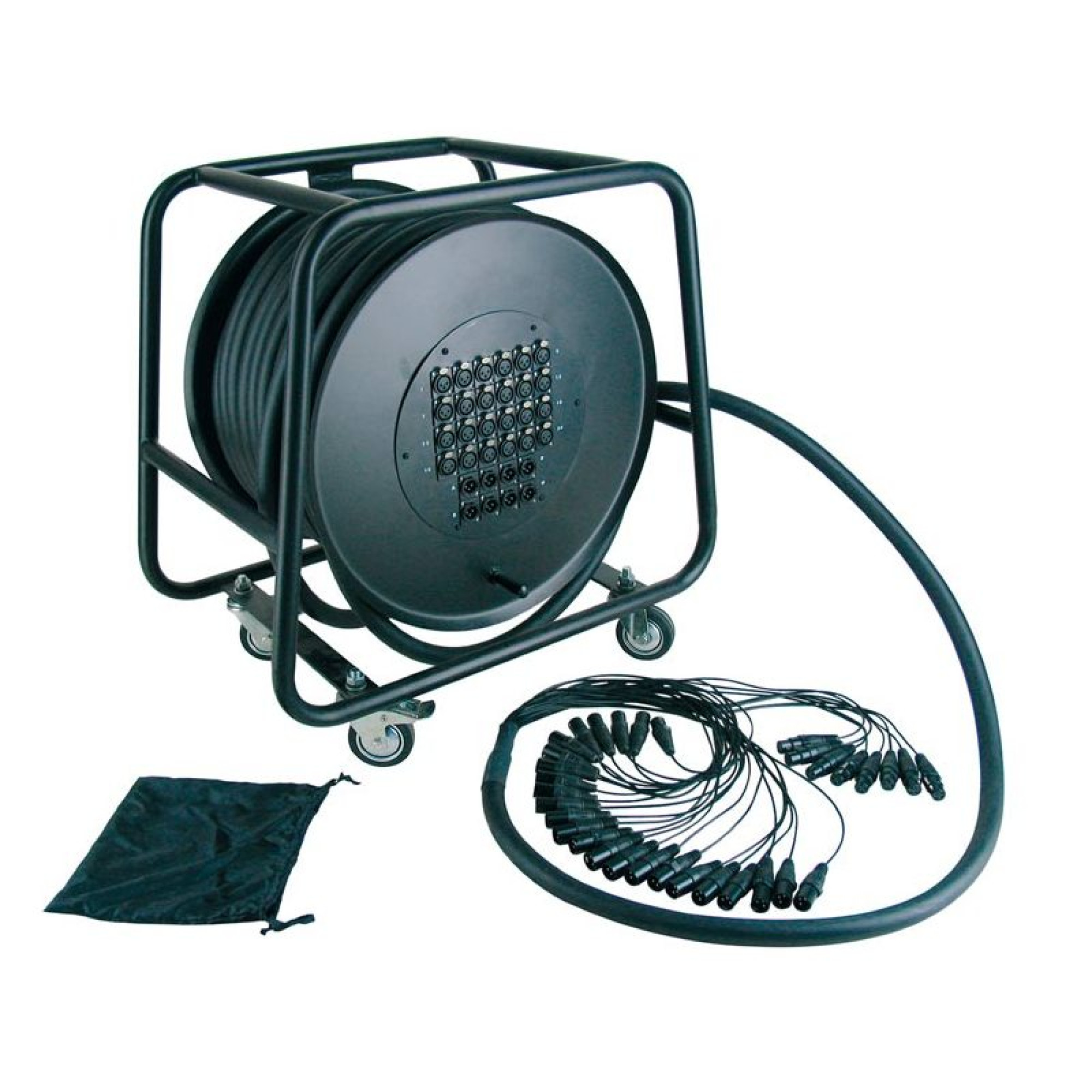 Мультикор, з котушкою, 50 метрів, входи 24 x XLR мама (female), виходи 8 x XLR тато (male).
