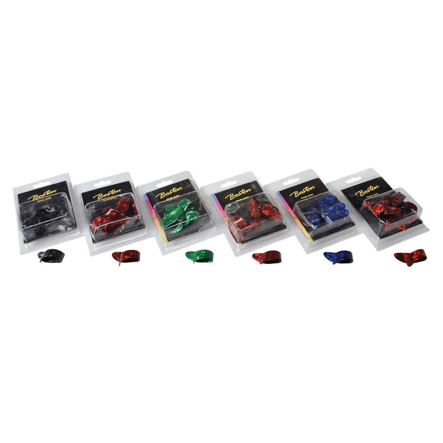 Комплект з 6 медіаторів для великого пальця різного кольору. Матеріал: целулоїд, розмір: середній.