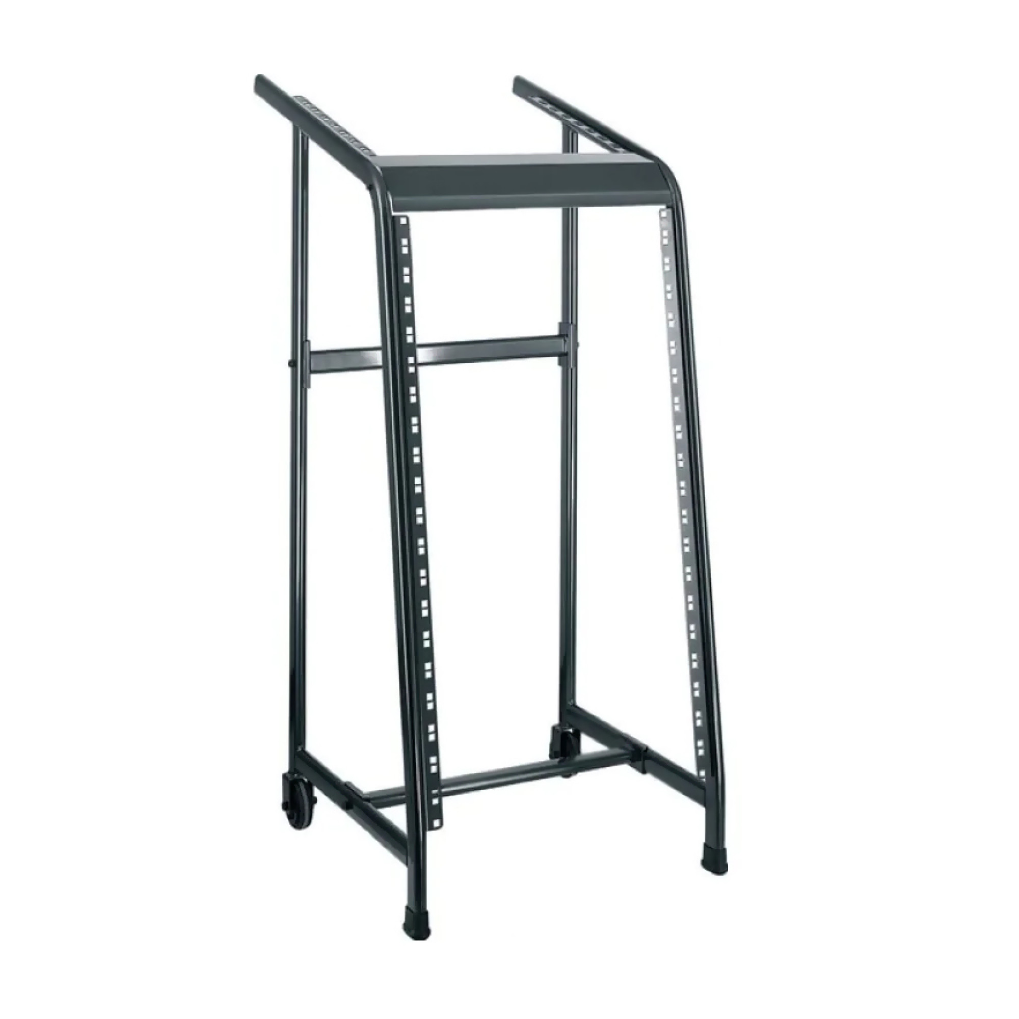 Професійна 19-дюймова стійка з 20 осередками та верхньою частиною на 8 осередків. Поставляється із 2 задніми роликами. Міцна зварна конструкція зі сталевих труб. Вантажопідйомність складає 90 кг.