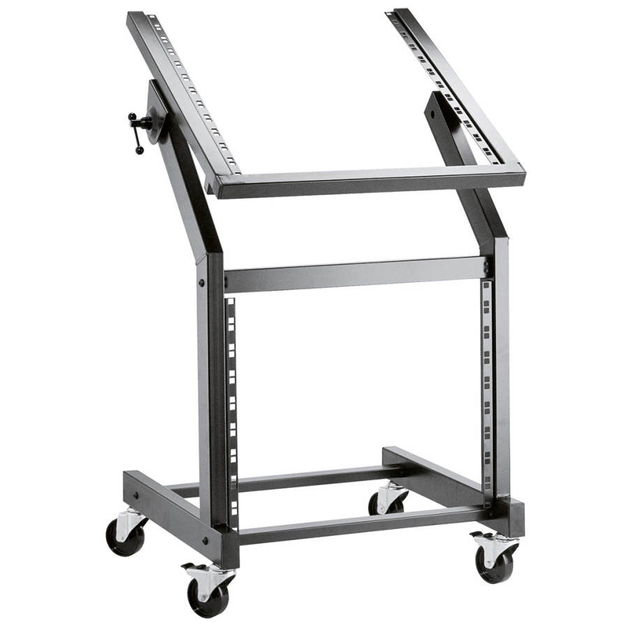 Міцна сталева рекова стійка. Має чотири колеса для зручного пересування, а також два можна фіксувати. Кут регулюється до 45° за допомогою пружного запірного механізму. 12 просторових модулів у верхній частині, 9 у нижній частині. Вантажопідйомність складає 50 кг.