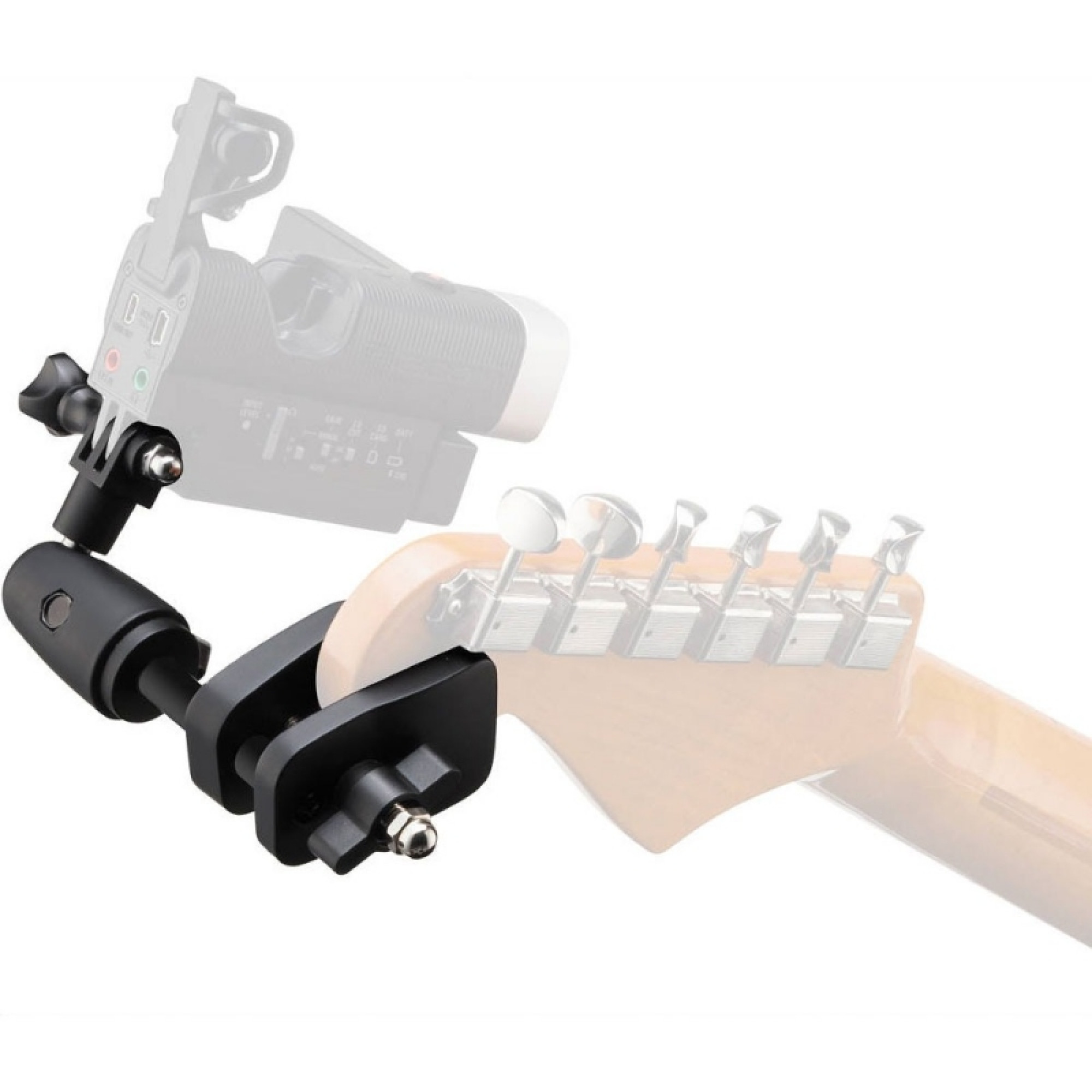 - Дозволяє знімати гру на гітарі з точки зору грифа