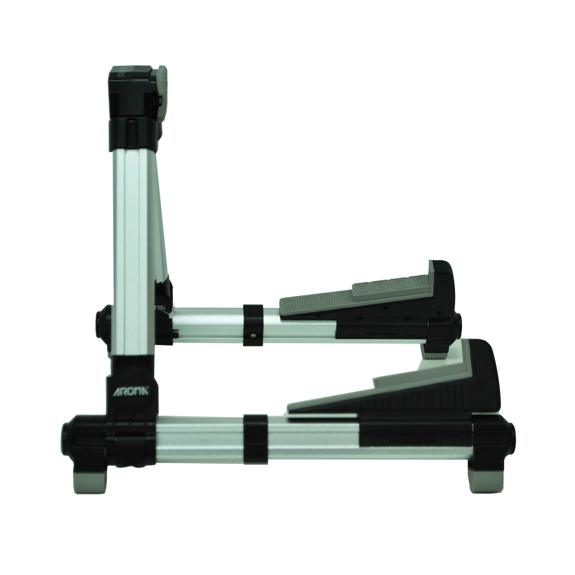 Компактна і універсальна A-образна гітарна стійка. Вона виконана у футуристичному стилі і має спеціальні механізми, які дозволяють змінювати глибину бази, що робить її придатною для безлічі струнних музичних інструментів. Конструкція виготовлена з алюмінію і міцного пластику, що робить стійку легкою та міцною. Також вона має гумові накладки в місцях контакту з інструментом та нековзні ніжки.