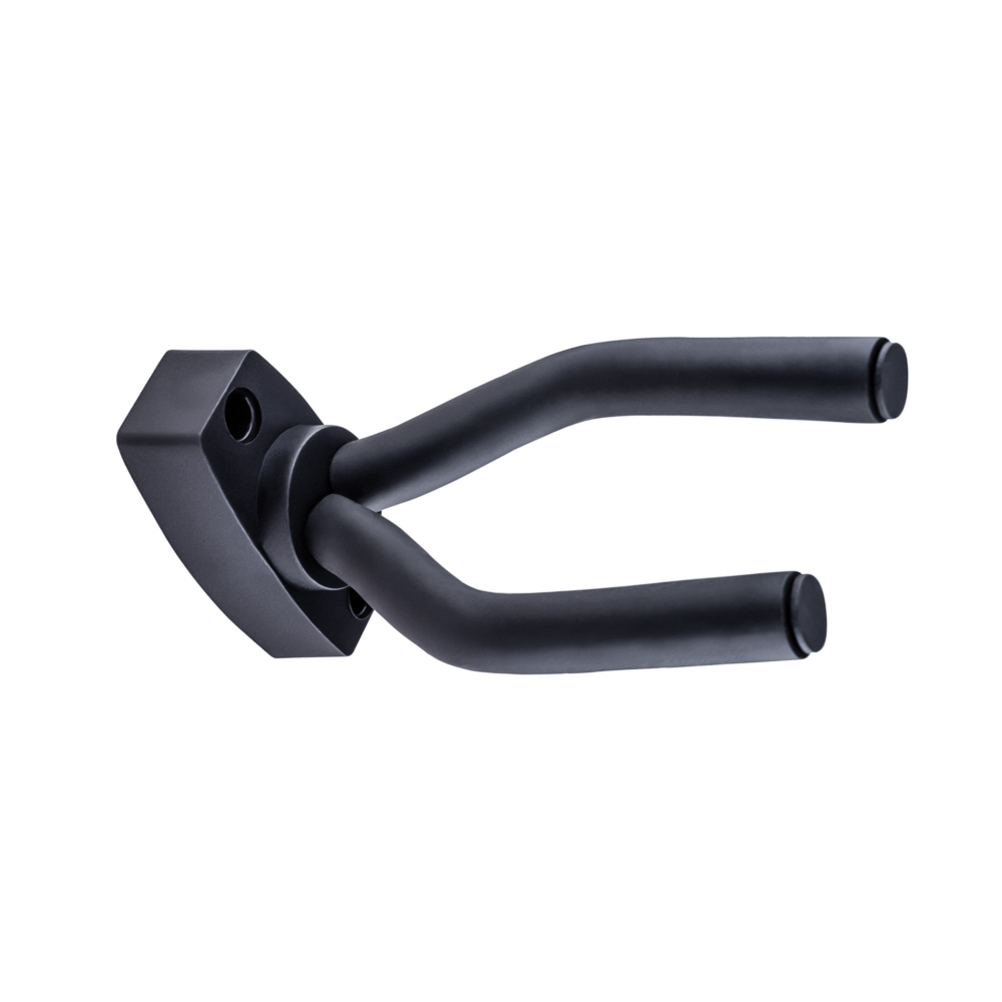 Універсальний та компактний настінний тримач для гітари. Пластикова конструкція та протектори з м'якої гуми. 2 рухомі частини, що дозволяють регулювати ширину.