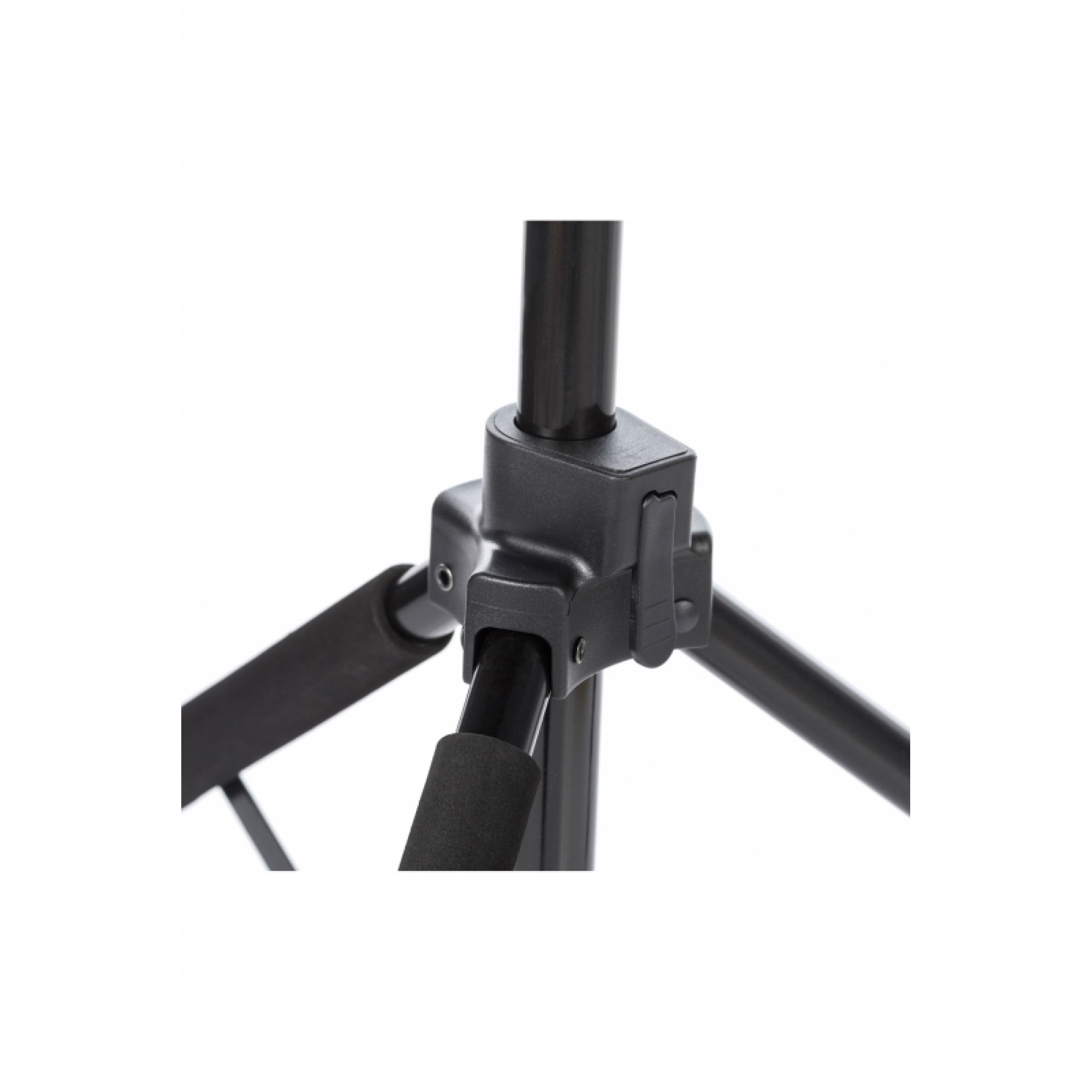 Універсальна стійка для гітари, що регулюється по висоті. Конструкція виготовлена з міцного металу. Всі частини стійки, що прилягають до гітари, покриті спеціальним м'яким матеріалом EVA, що забезпечує повну безпеку інструменту. Стійка обладнана фіксатором для грифу, що автоматично замикається. Доступна в чорному кольорі. Система фіксації: Auto Grip. Висота: 82-130 см. Вага: 1,2 кг.