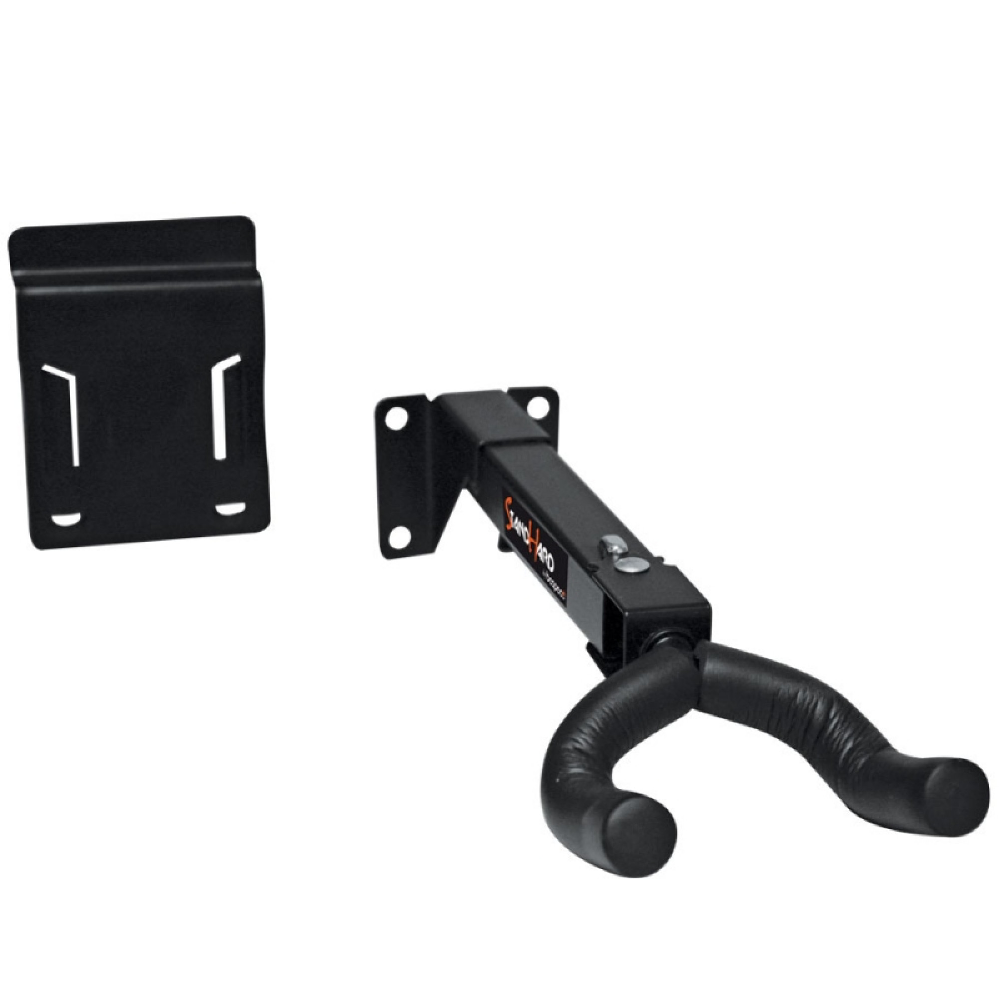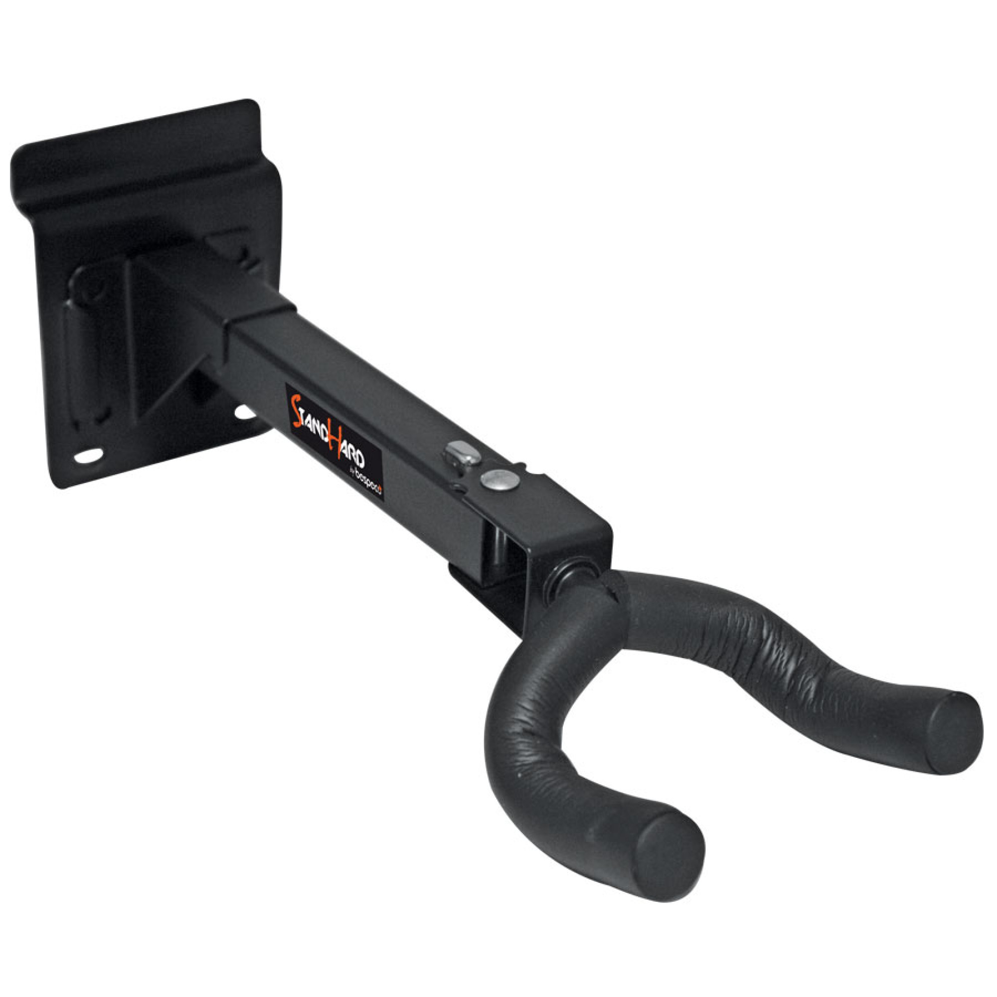 Універсальний настінний тримач для гітари. Міцна металева конструкція вкрита спеціальним м'яким матеріалом на контактних із гітарою поверхнях. Дизайн тримача дозволяє регулювати кут нахилу до 180° й фіксувати положення спеціальною кнопкою.