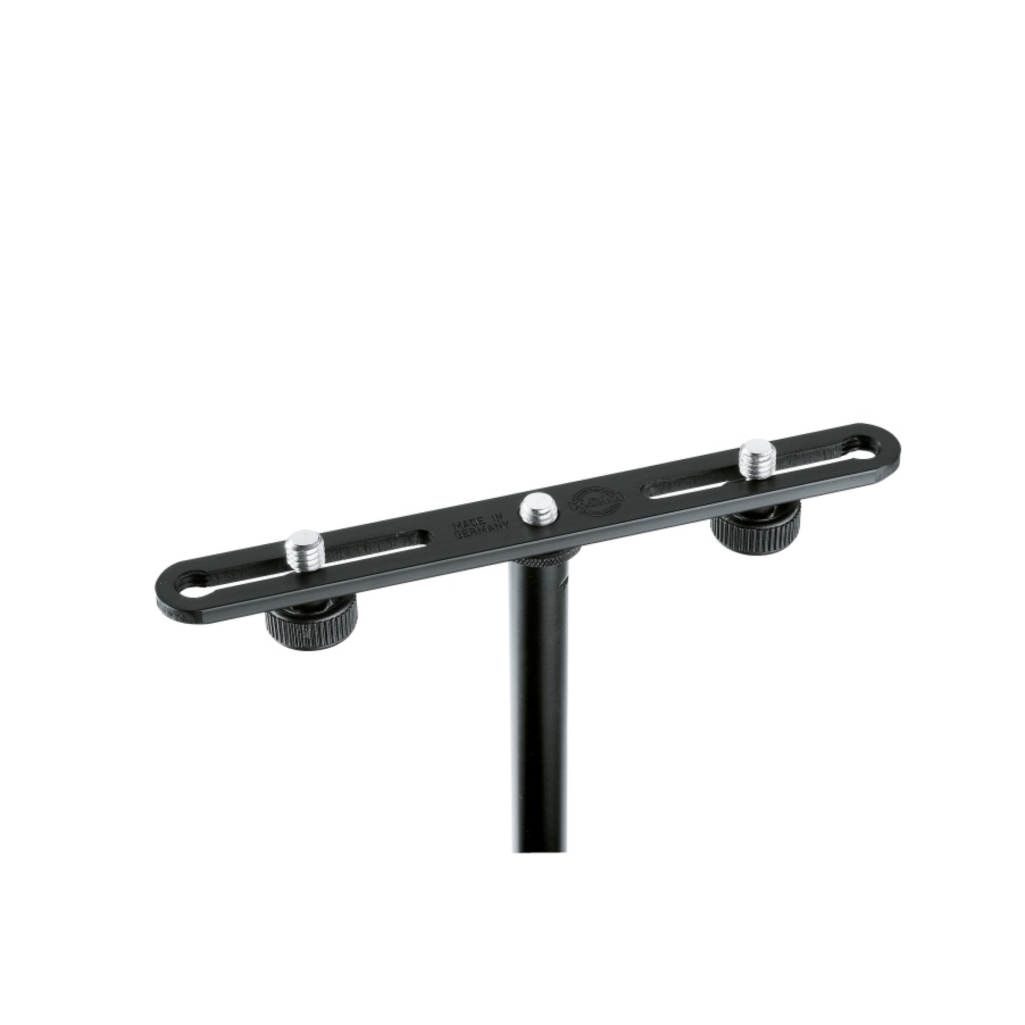 Кріплення для мікрофонних стійок König & Meyer 23550 легко під'єднується до верхньої частини мікрофонних стійок для кріплення 2 мікрофонів або штанг. 3/8-дюймові гвинти, що регулюються. Кріплення дуже надійне та універсальне, що дає можливість встановлювати різні формати стійок. Матеріал кріплення виконаний з алюмінію, а довжина становить 200 мм. Кількість гвинтів із накатаною головкою: 2. Відстань між отворами від 60 до 172 мм.