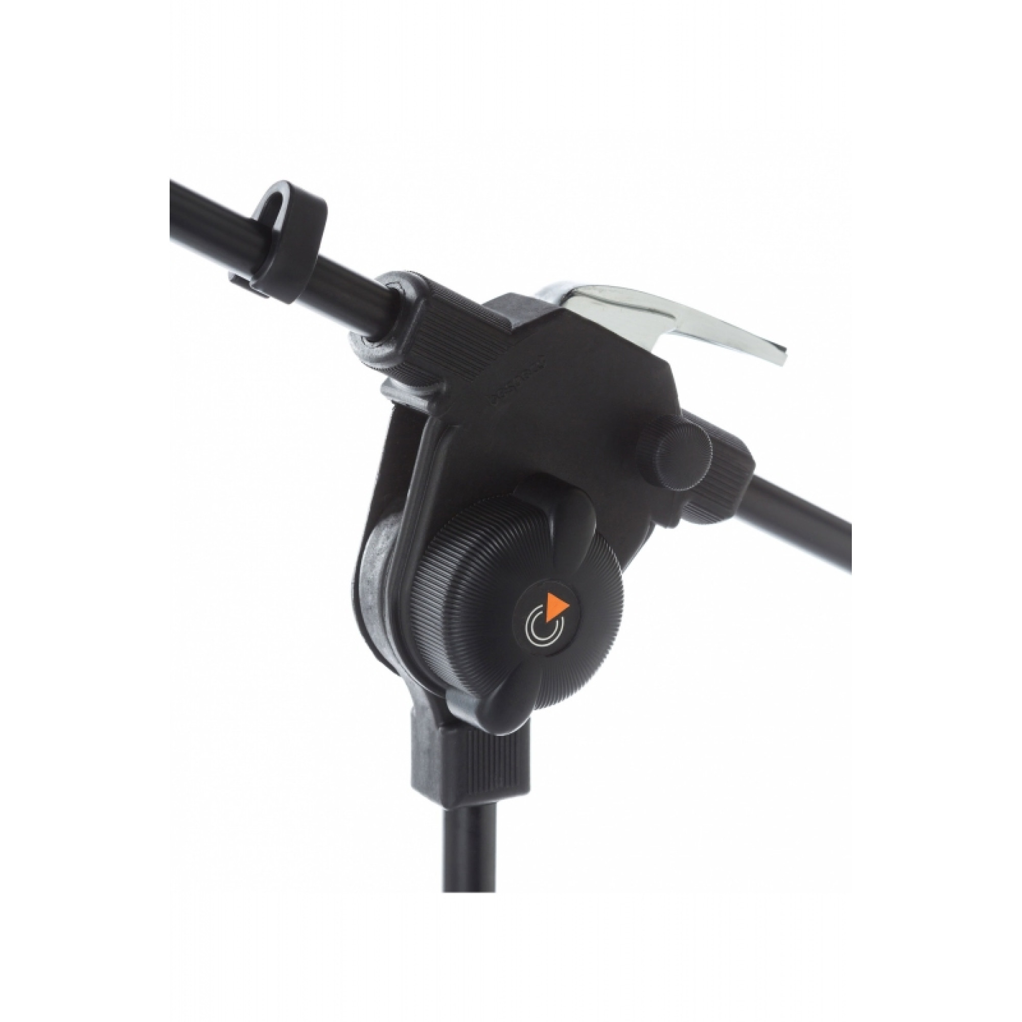Мікрофонна стійка з телескопічною стрілою та зручними кнопками з хромованого цинкового сплаву та гумового покриття, що дозволяють легко та швидко її регулювати. Обладнана надійною функціональною системою фіксації "PUSH", яка встановлена як у центральному блоці фіксації, так і в місці кріплення телескопічної руки. Дана конструкція системи фіксації виготовлена з хромованого цинкового сплаву, вона надійна, проста і зручна у використанні. Центральний блок фіксації, база та всі неметалеві частини виготовлені з нейлону, забезпечуючи тривалий термін служби стійки. Нековзні гумові ніжки.