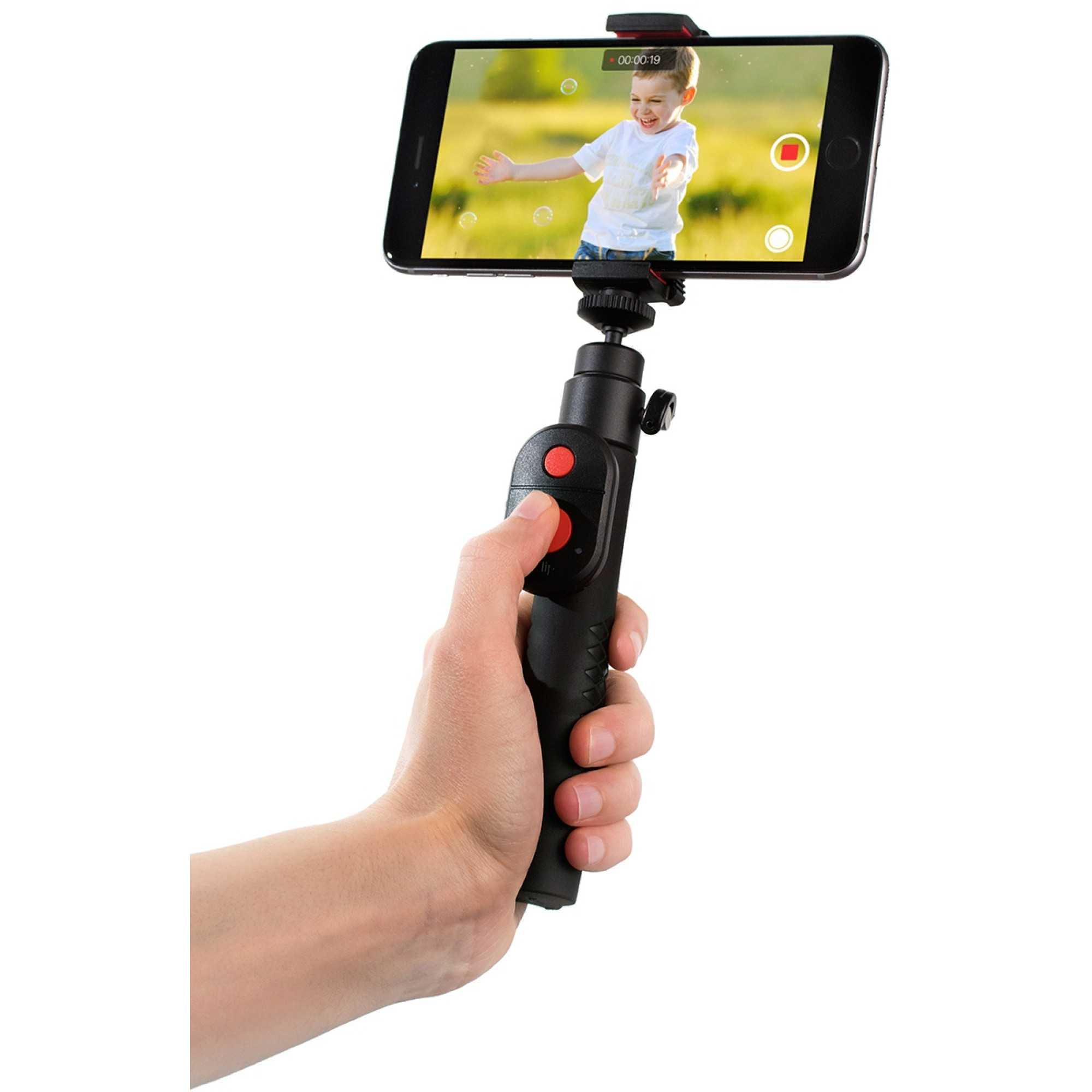 iKlip GO обладнаний розсувним тримачем, який дозволяє точно позиціонувати будь-який смартфон (навіть в чохлі) під будь-яким кутом для захоплення фото, відео та аудіо.