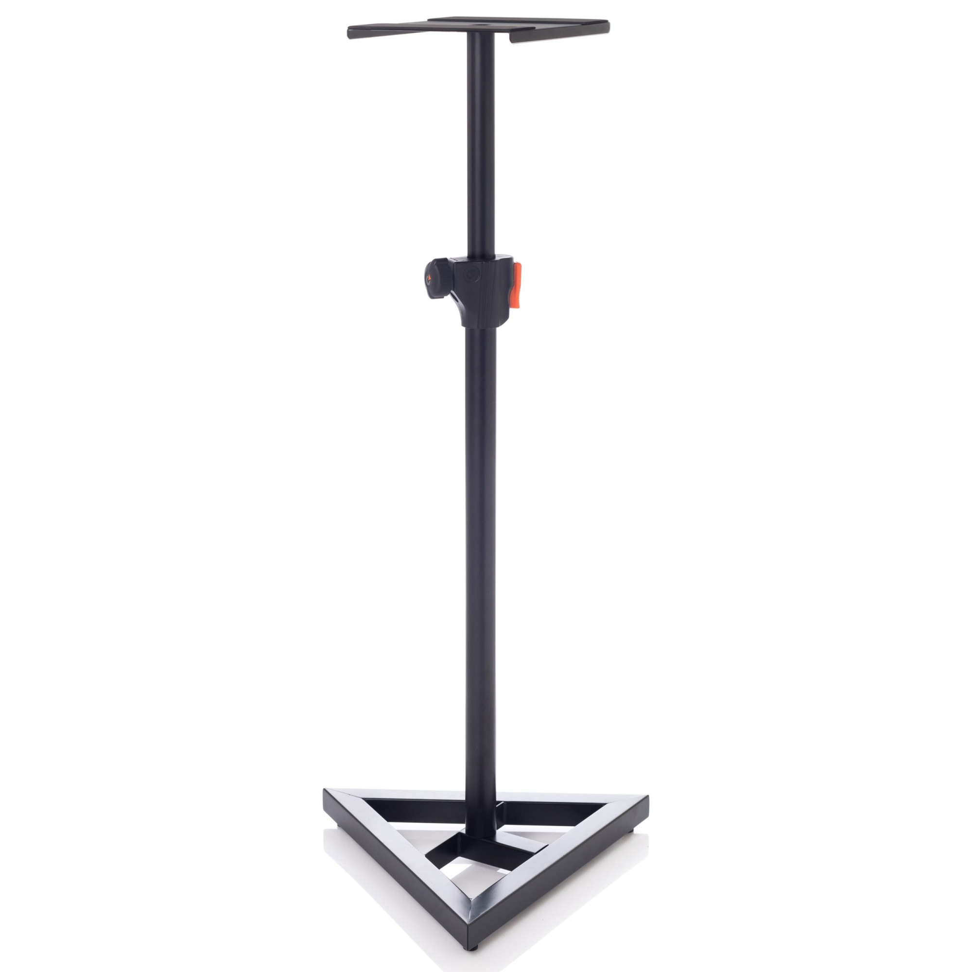 Телескопічна пневматична стійка для акустичних систем загального призначення, студійних моніторів, hi-fi & hi-end-акустики. Стійка легко регулюється по висоті за допомогою пневматичного механізму і фіксатора. Надійна трикутна основа забезпечує стійкість конструкції. Є можливість установки на шипи для акустичної розв'язки від підлоги і реалістичної передачі низьких частот. Полиця для розміщення акустики має розміри 230 х 230 мм.