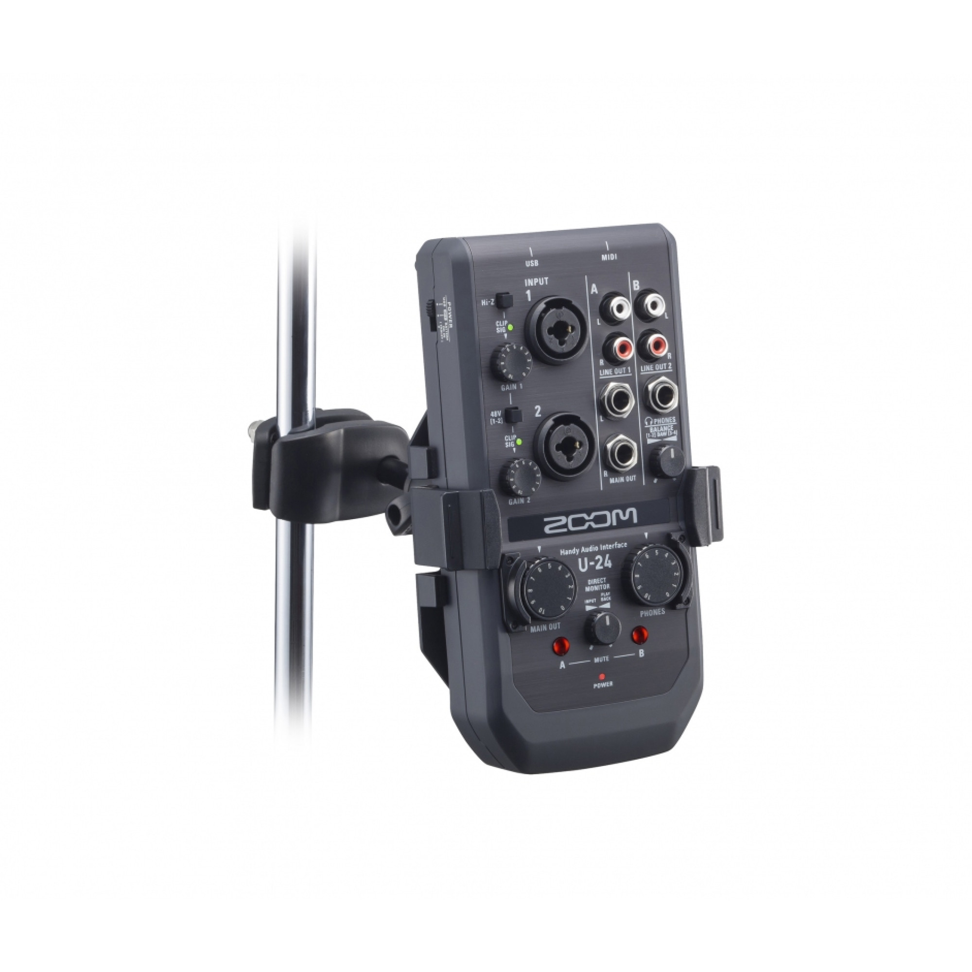 Кріплення Zoom AIH-1 надасть Вам ще більше гнучкості при використанні Вашого портативного аудіоінтерфейсу Zoom на сцені, під час репетиції або в домашній студії. Він міцно утримає Ваш аудіоінтерфейс на мікрофонній стійці, в той час як Ви будете підключати мікрофон або музичний інструмент, вибирати потрібний рівень посилення або здійснювати прямий моніторинг. Пристрій поміщається в спеціальне кріплення, а потім встановлюється на будь-яку мікрофонну стійку за допомогою лещат. Сумісний з Zoom U-22, Zoom U-24, Zoom U-44.