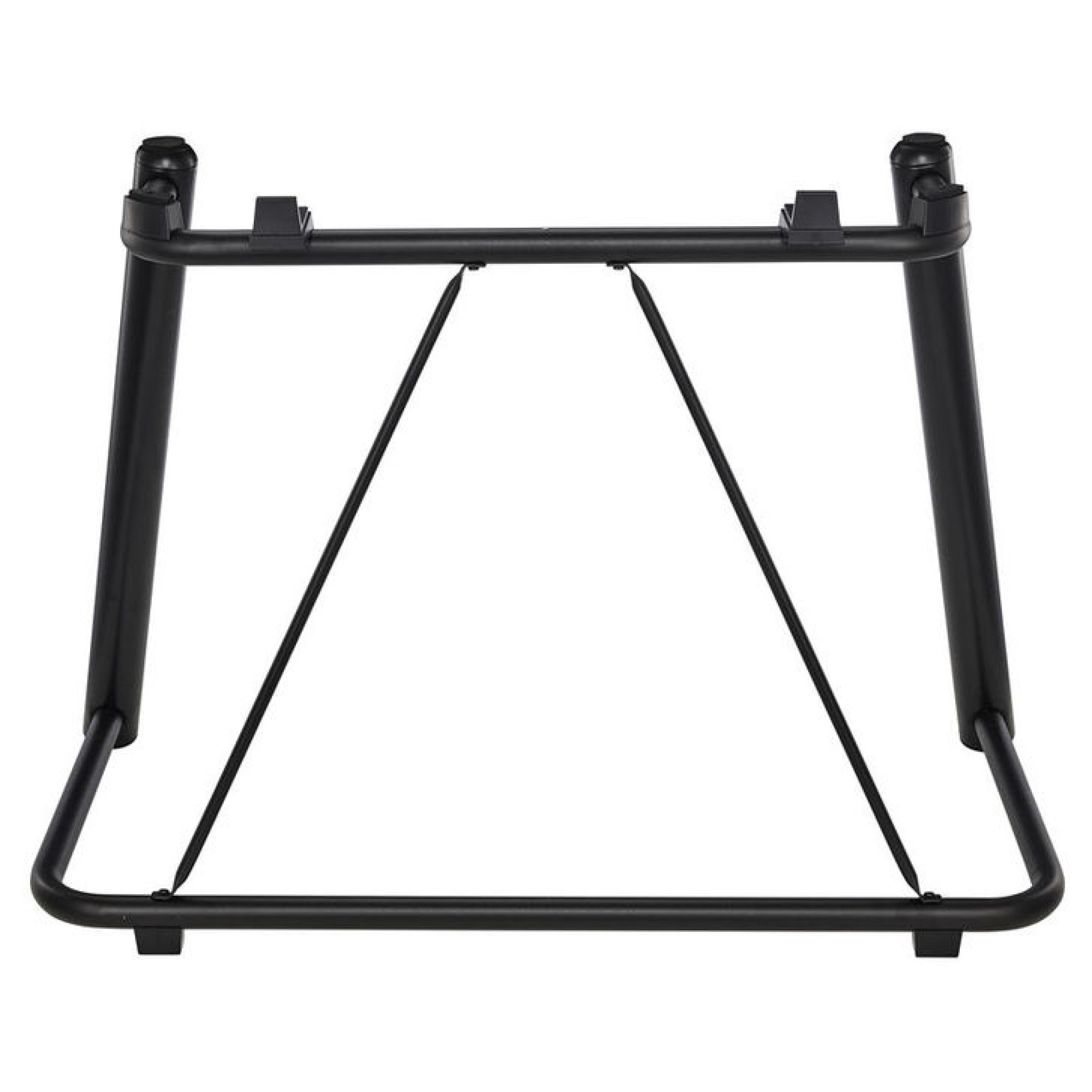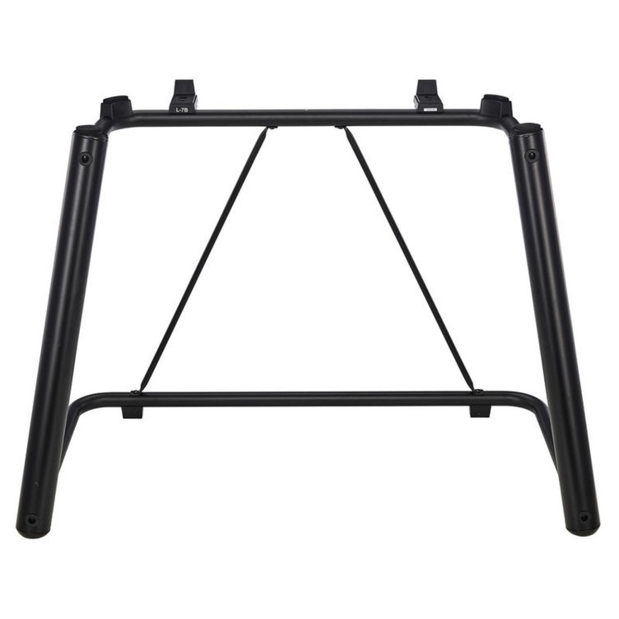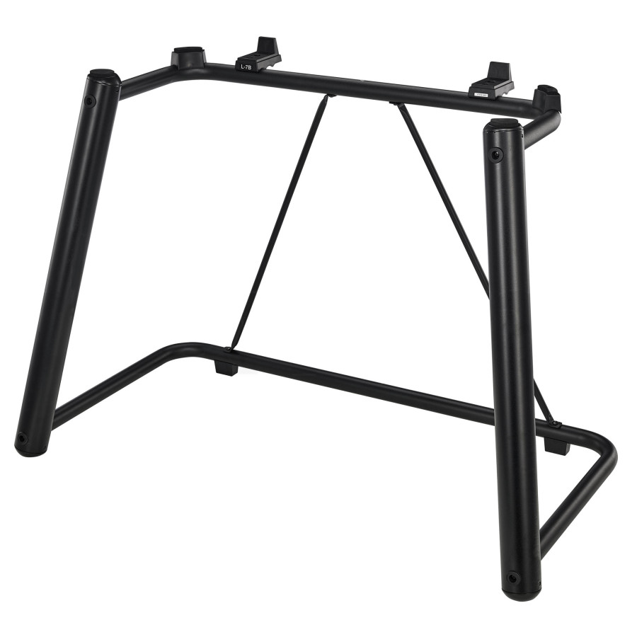 Стійка для робочої станції Yamaha Genos. Міцні ніжки утримують клавіатуру, залишаючи досить місця для ніг, щоб грати сидячи. Інструмент надійно зафіксований на стійці й підтримується товстими прокладками з пінопласту для максимальної безпеки та надійності.