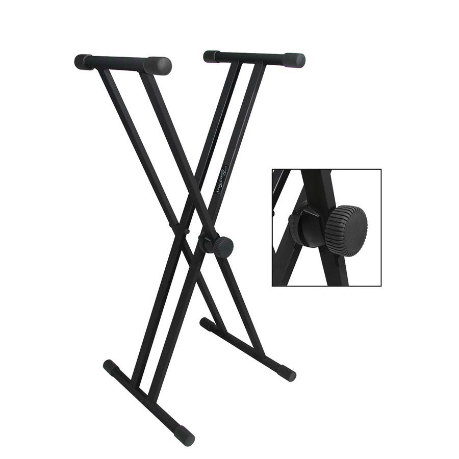 XX-подібна стійка для клавіатури, діаметр труб 35 см. Керування висотою і шириною стійки відбувається за допомогою поворотного замка розташованого на перетині труб.