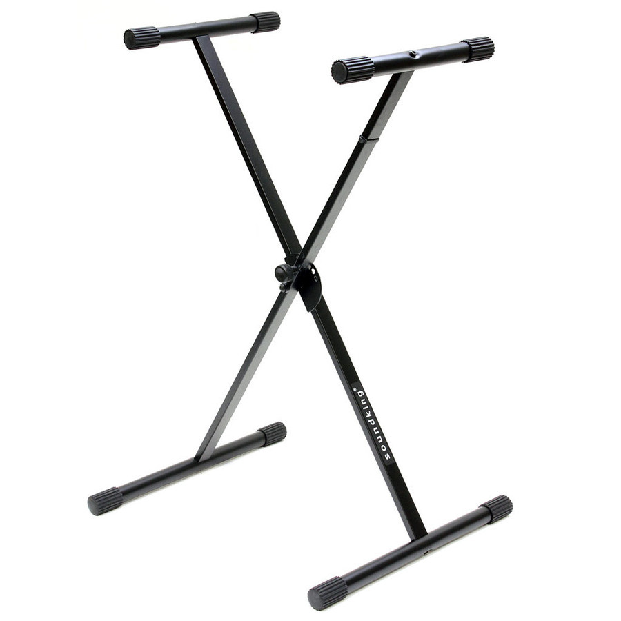 Клавішна Х-подібна стальна стійка з гвинтовим затискачем. Гумові ніжки. Розбірна конструкція.