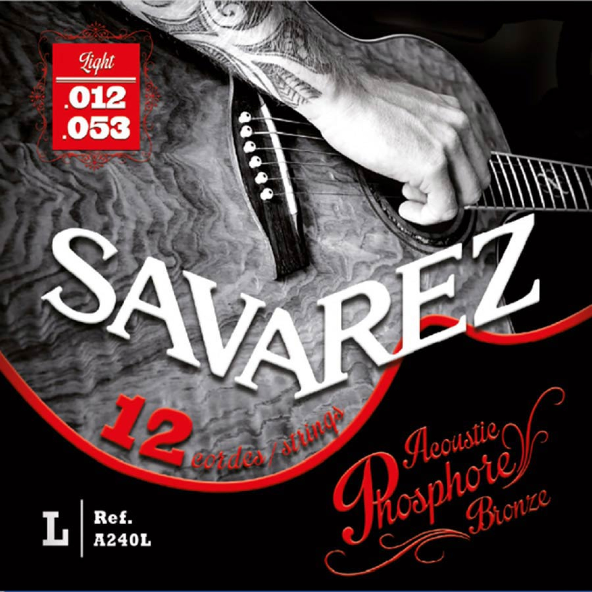 Струни Savarez A240L – це комплект з 12 струн для акустичної гітари розміром 012-053 від французького виробника Savarez. Комплект струн з загартованим сердечником з високовуглецевої сталі та обмоткою з фосфорної бронзи. Струни відрізняються чистими, чіткими та теплими тонами.