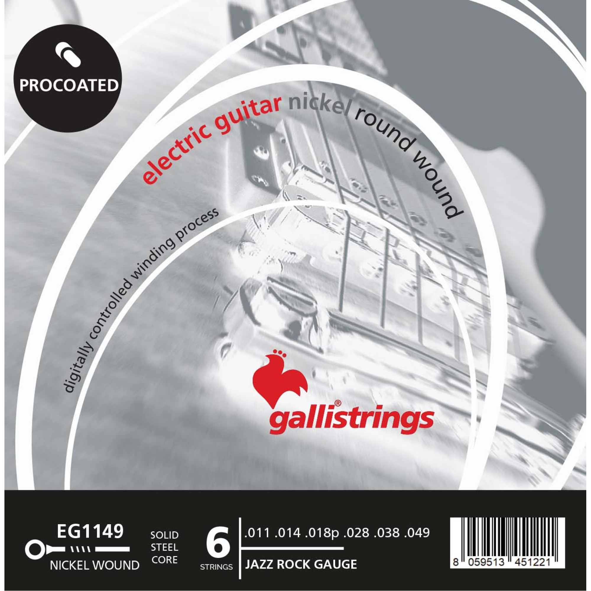 Комплект струн Gallistrings EG1149 JAZZ ROCK для електрогітари складається зі стальних струн з нікельованою круглою обмоткою. Калібр .011 – .049 забезпечує збалансоване звучання з потужним низьким і чітким високим спектром, що ідеально підходить для джазу та року.