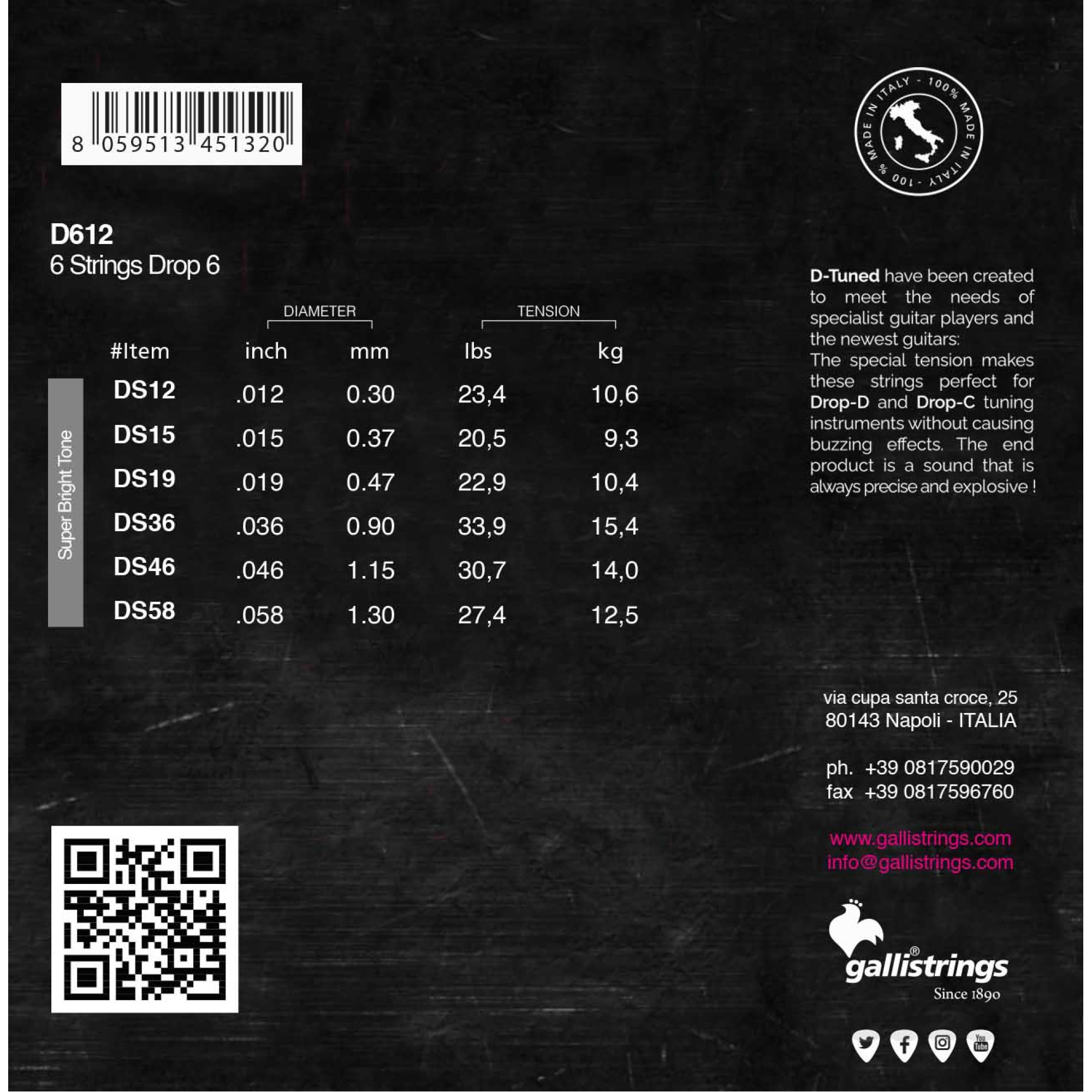 Комплект Gallistrings D612 з 6 струн DROP GUITAR .012 – .058. Струни D-Tuned були створені для задоволення потреб професійних гітаристів та новітніх гітар: спеціальний натяг робить ці струни ідеальними для налаштування інструментів Drop-D та Drop-C, не викликаючи ефекту дзижчання.