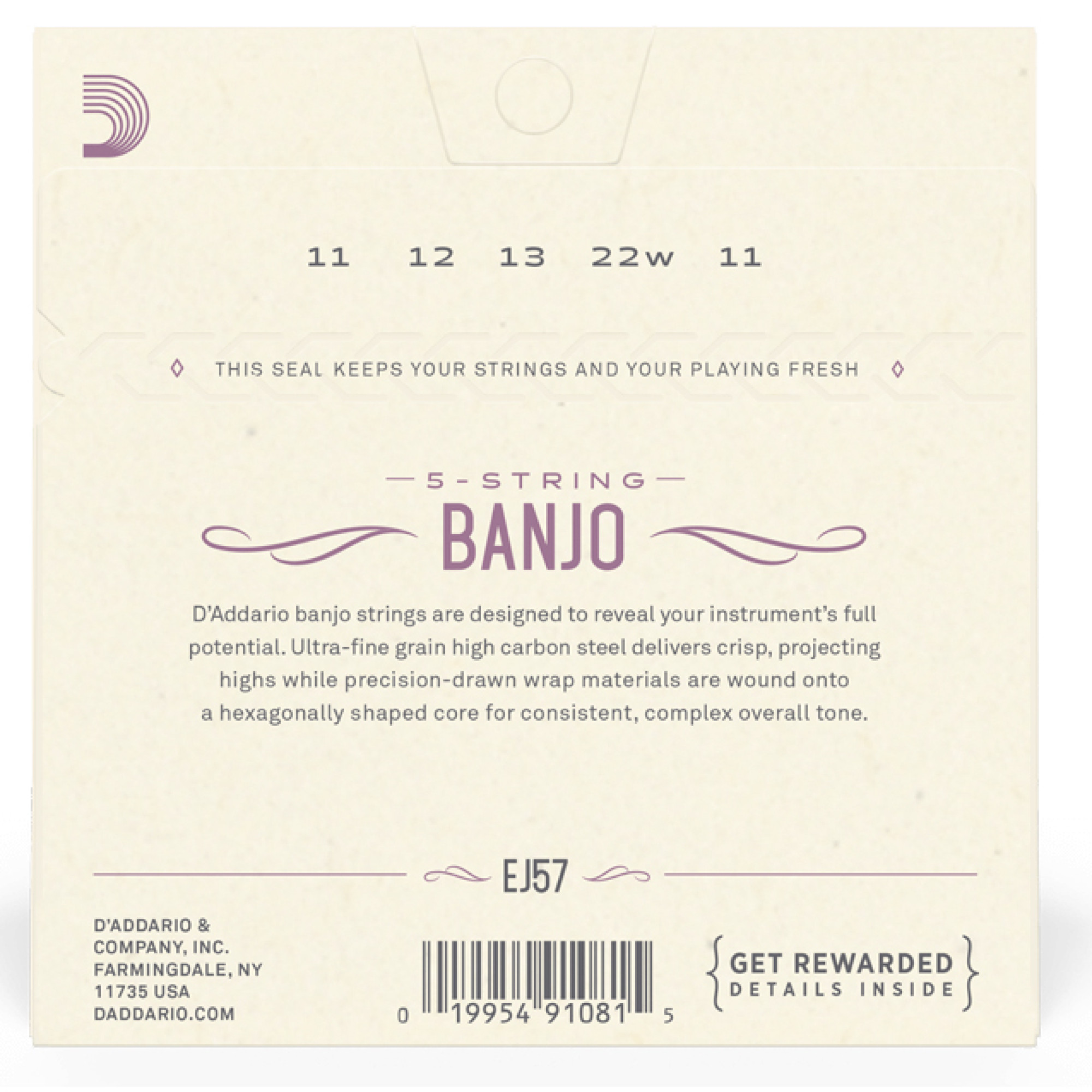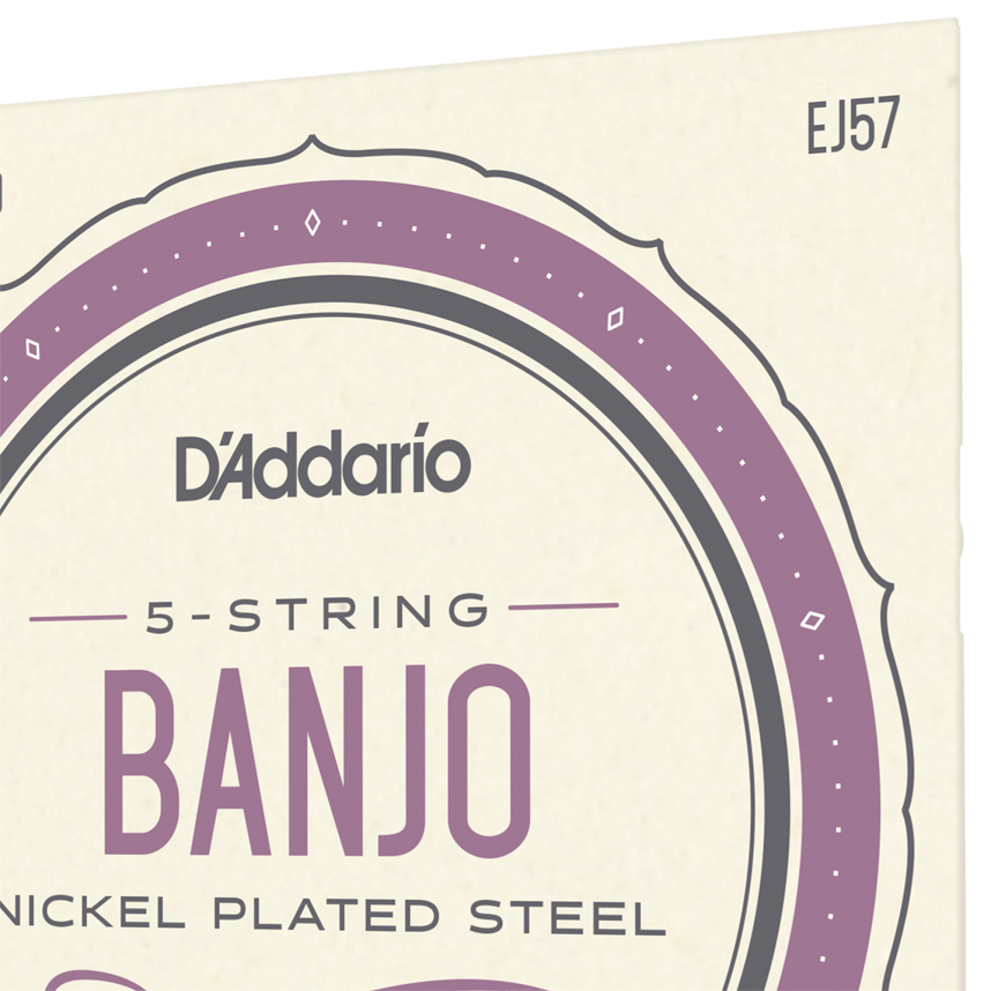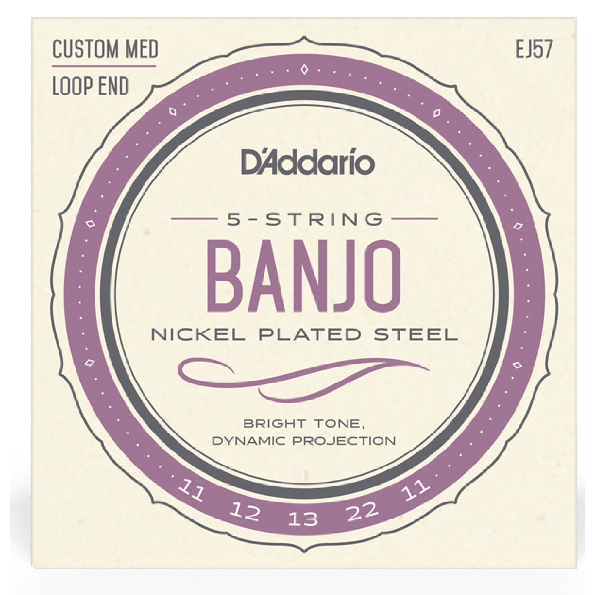 Струни D'Addario EJ57 для 5-струнного банджо виготовлені зі сталі з високим вмістом вуглецю та нікелевим покриттям. Це найважчий набір струн від D'Addario, що забезпечує підвищений опір та пробивне звучання. Нікелеве покриття додає яскравого тону та довговічності. Конструкція з петлею підходить для всіх видів банджо.