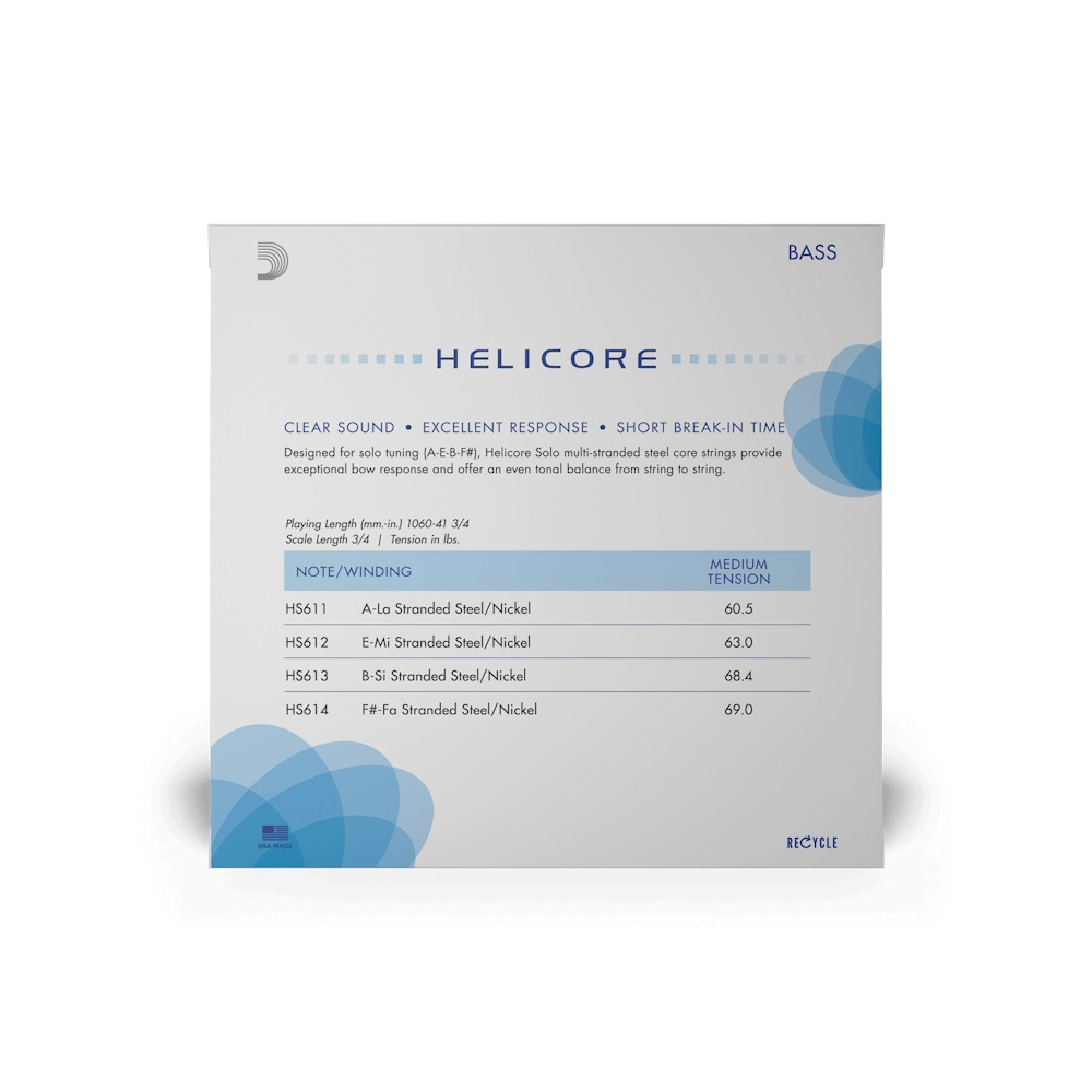 D'Addario HELICORE SOLO BASS STRING SET (3/4 Scale, Medium Tension) – це набір спеціально струн, розроблений для вимогливих сольних виконавців, які шукають чудову збалансованість між відгуком, теплим звучанням і легкістю гри. Вони оптимізовані для строю A-E-B-F# scordatura Solo, на тон вище стандартного. Струни мають сталеве осердя та нікелеву обмотку, що забезпечує чудове звучання та довговічність. Середній натяг надає можливість грати комфортно, а демпфірування оптимізоване для використання смичка, що робить їх ідеальними для сольного виконання.