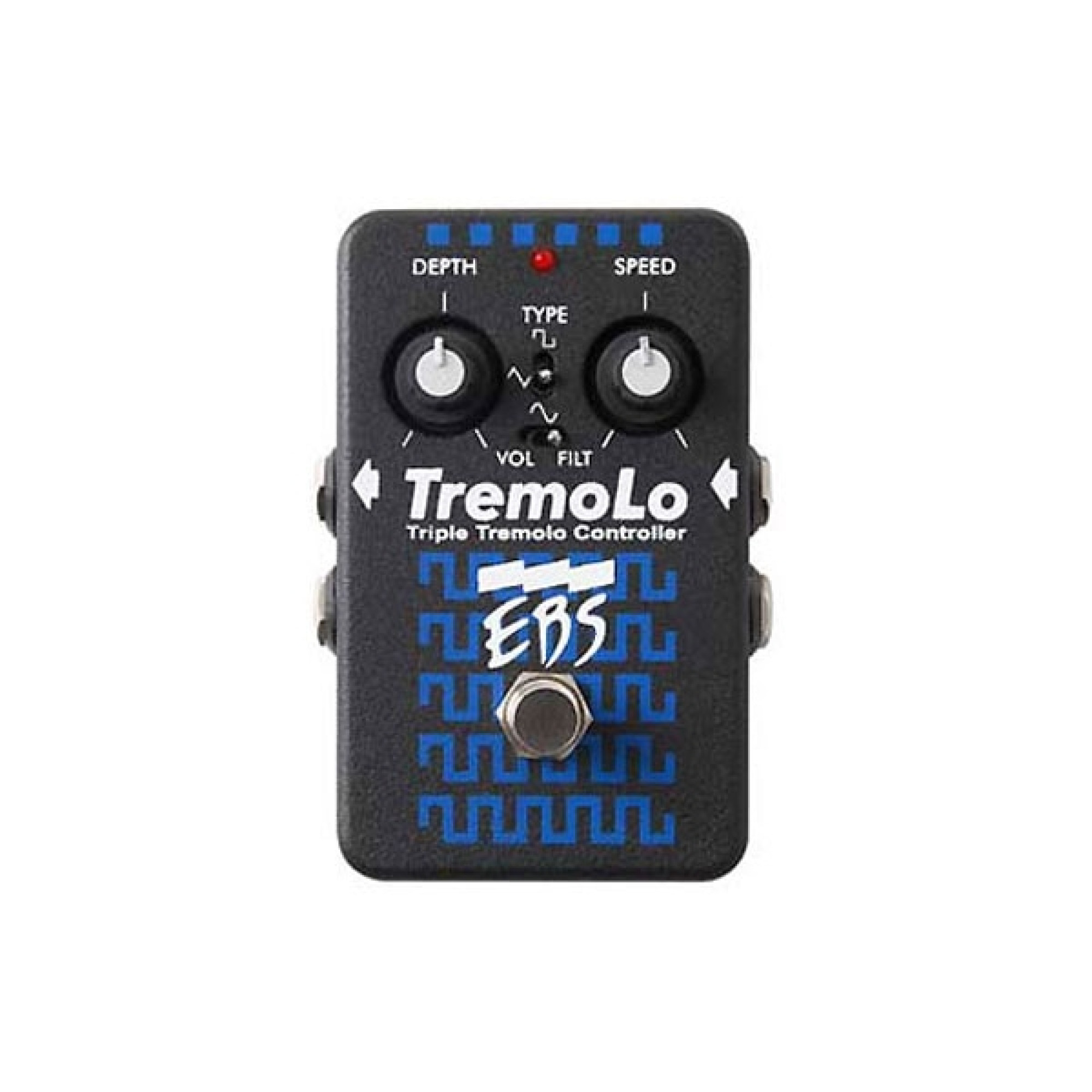 Керування. Як і більшість педалей тремоло, EBS Tremolo оснащена ручками Depth (глибина модуляції) і Speed (частота модуляції) та перемикачем форми хвилі (синусоїдальна, пілообразная, квадратна).