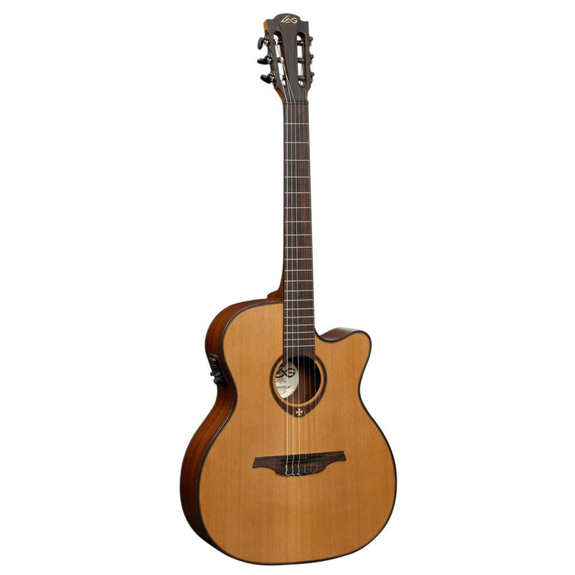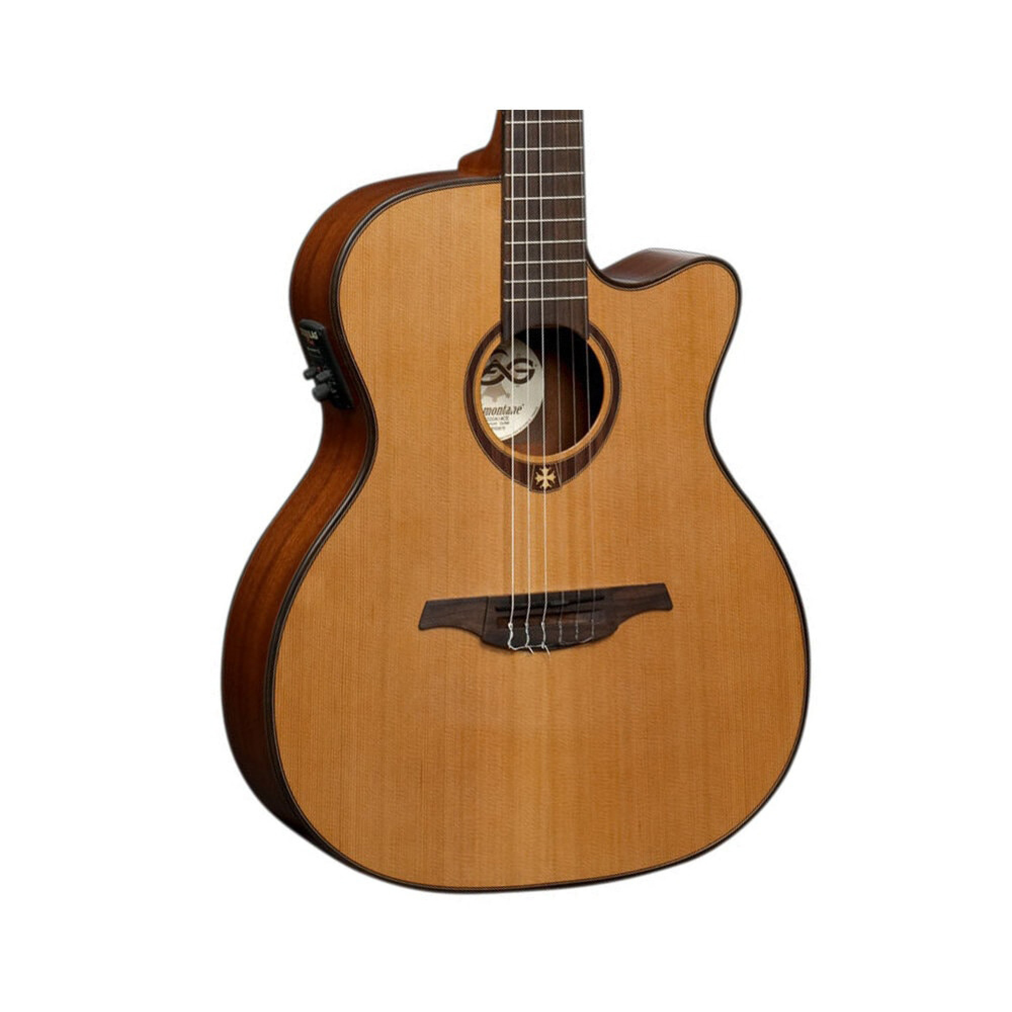 Lag Tramontane TN200A14CE – класична модель 6-струнної гітари з вбудованим звукознімачем. Верхня дека інструмента – масив червоного кедра, нижня дека та обичайки виготовлені з червоного дерева. Розетка інструмента традиційно декорована окситанським хрестом. Окантовка деки – індонезійський палісандр та клен. Матеріал грифа – червоне дерево з палісандровою накладкою, 2-бічний анкер. 20 ладів (срібно-нікелевих). Графітові верхній та нижній поріжок. Бридж з індонезійського палісандра. Механіка Die-cast, чорна, матова. Електроніка гітари – п’єзозвукознімач NanoFlex з преампом Studio Lag Plus. Колір інструмента – натуральний, покриття атласне.