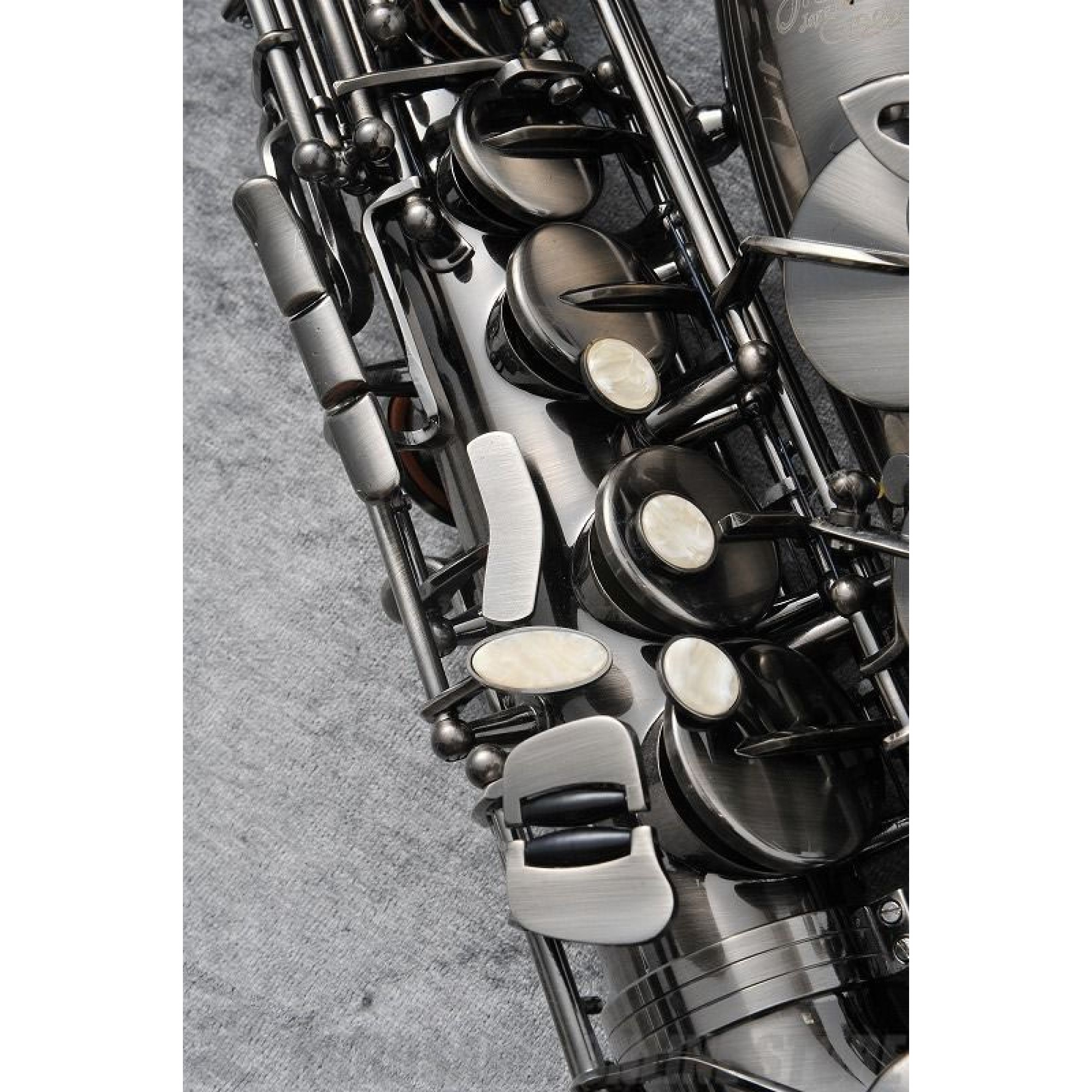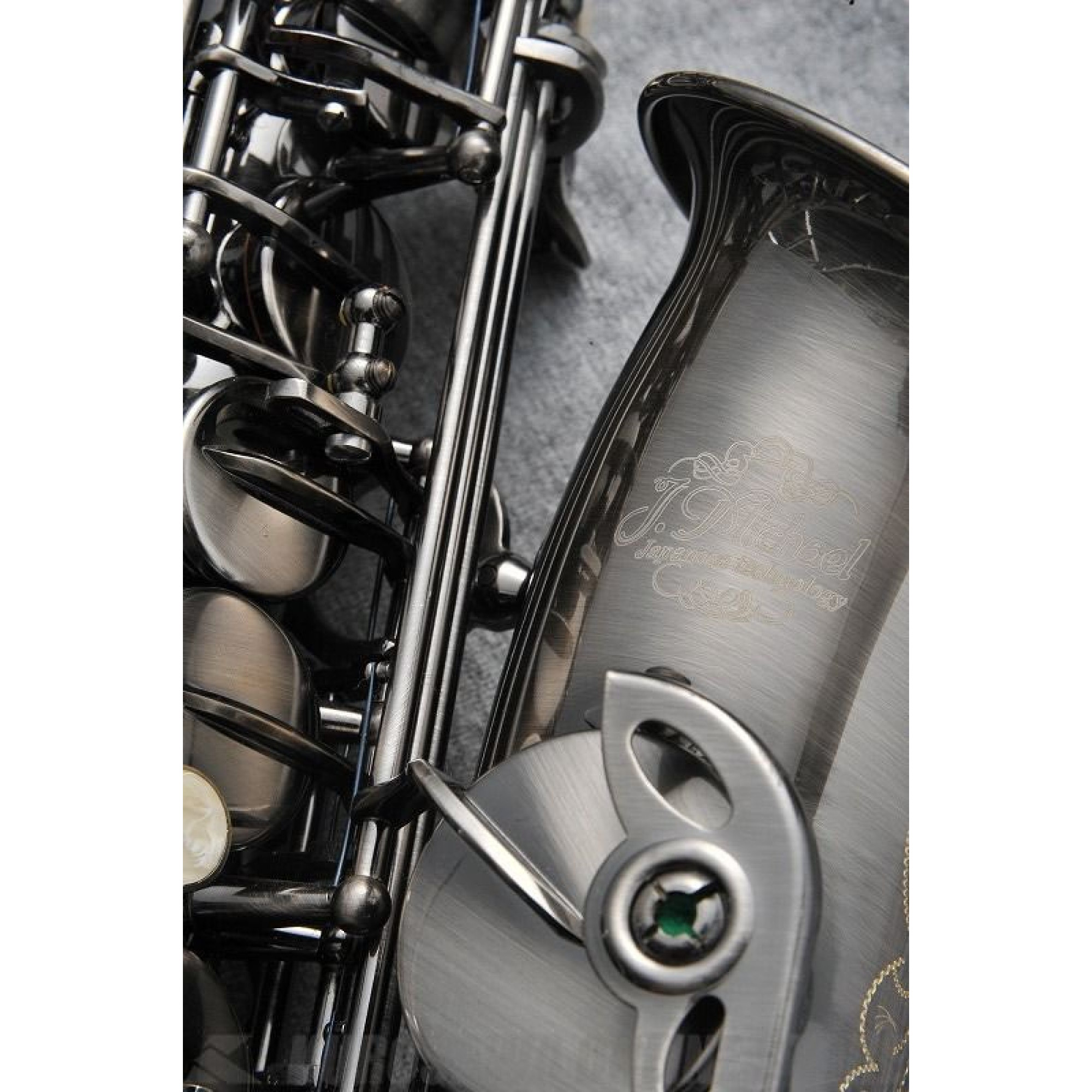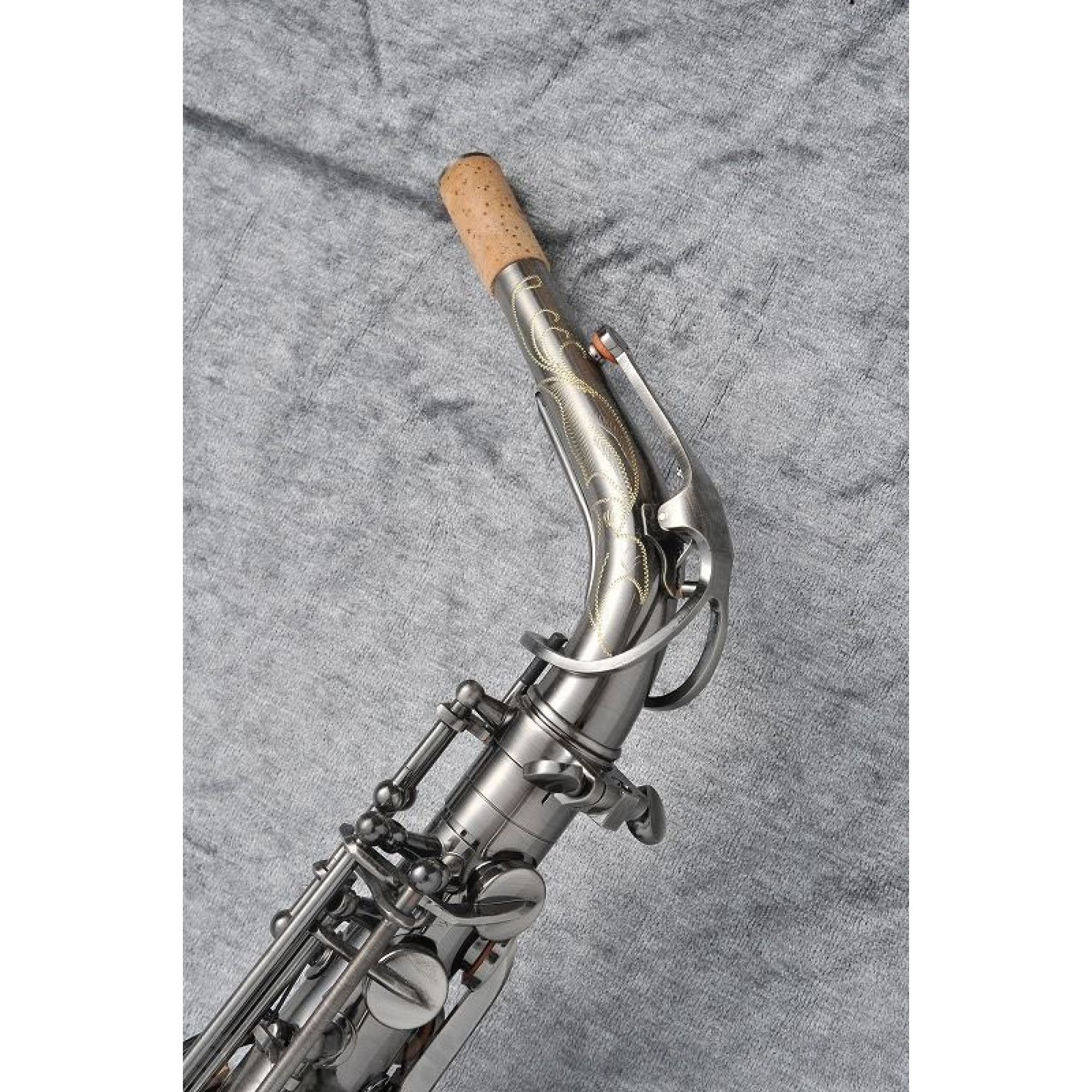 Витончені візерунки, вигравуванні на розтрубі інструменту, підкреслюють і доповнюють плавні обриси саксофона.