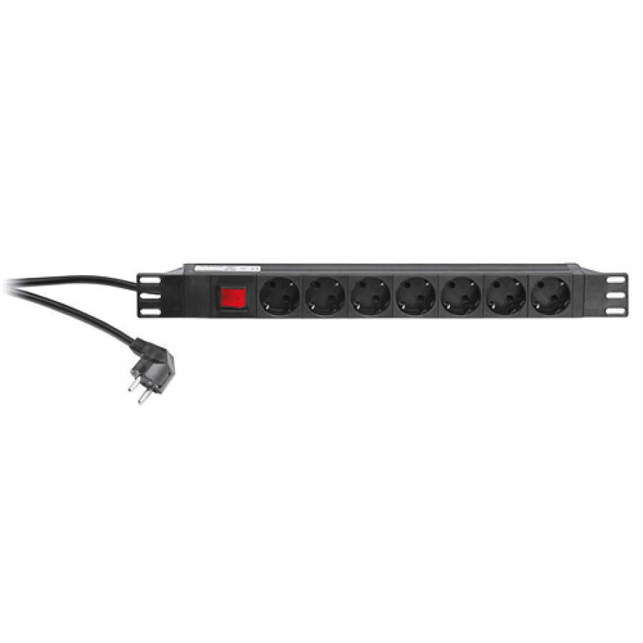 1 space Power Box, sturdy aluminum housing. Only for alternating voltage. Power supply 16 A 230 V~. With on/off switch, plug and 2 m cable and 7 sockets on the front side. Weight: 0,74 kg.