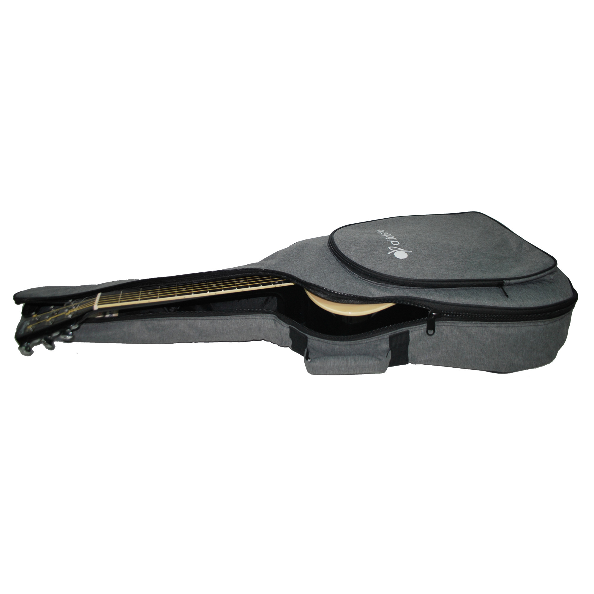 The bag for 41-inch acoustic guitar is made of dense, durable fabric with water-resistant properties – 600D nylon. It features an attractive design and a convenient shape. Equipped with one large pocket for all essentials, it also has a side handle for carrying the guitar in hand and an additional handle on the back of the bag. The bag will reliably protect your instrument from scratches and water splashes.