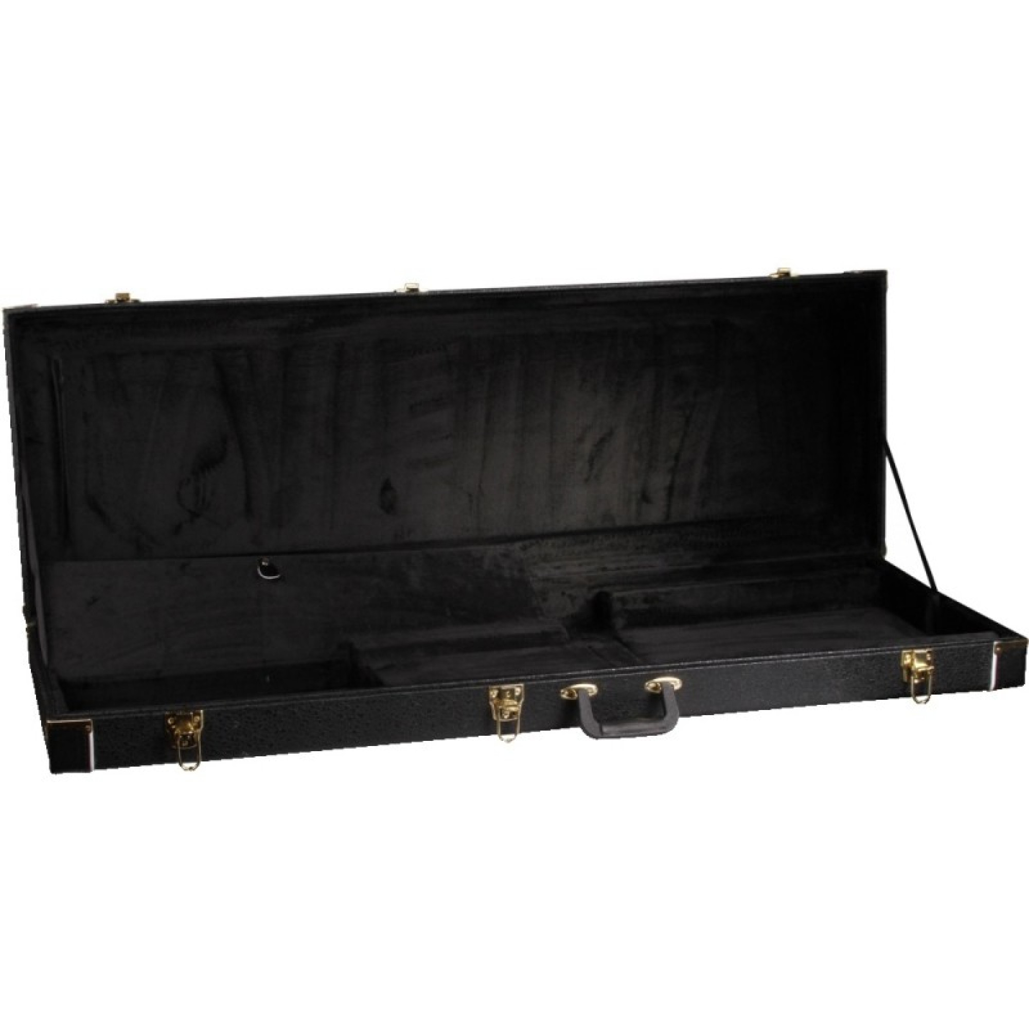 The Cort CGC75 electric bass guitar hard case features a durable leather outer body, chrome hardware and black velour interior lining. The modern design boasts a stylish look and provides excellent protection for bass guitars.