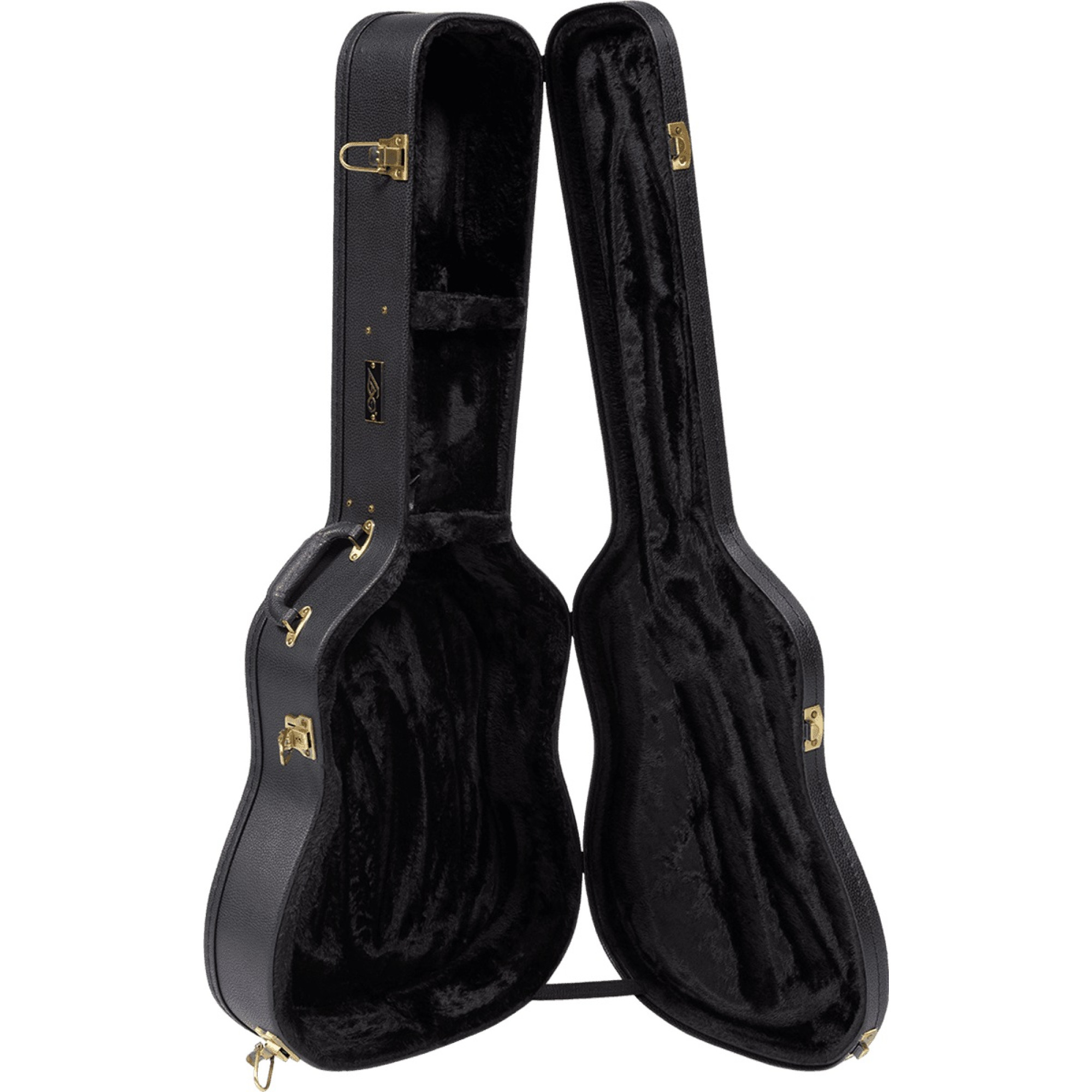 12-string acoustic guitar case in black leather. It has an attractive design and comfortable shape. Equipped with a side handle for transporting your guitar in hand. Now you can take your guitar on any journey with comfort and shock protection.