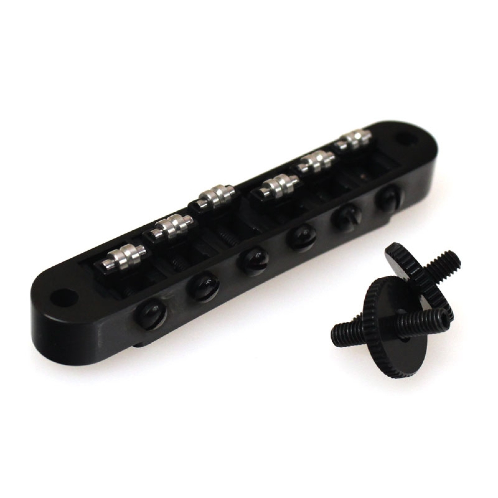 Bridge for electric type Tune-o-matic, roller seat, 10.4mm string spacing, center to center landing 73.5mm screws Diameter of 4.2mm, included: Bridge 2 seat screws with sleeves to the body.