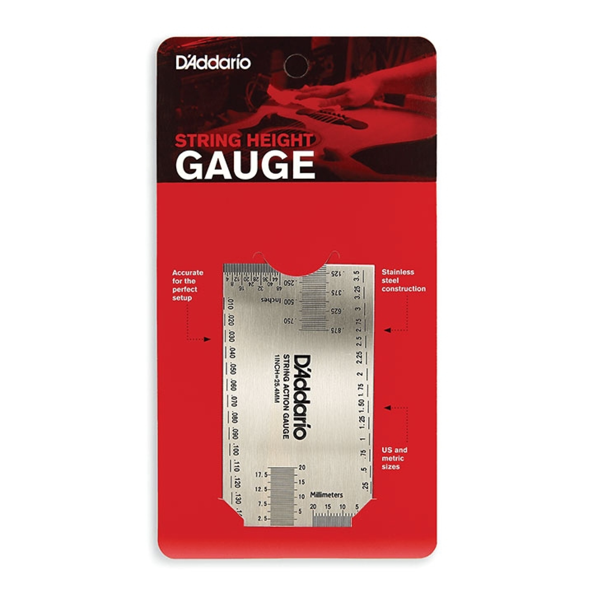 The D'Addario String Height Gauge is an all-in-one tool to help you set up your guitar with the highest possible level of precision. Made of stainless steel, this durable tool helps you easily measure the height of your strings and pickups, neck relief, and other critical measurements. With access to these measurements all in one place, getting your guitar into its best playing form has never been easier.