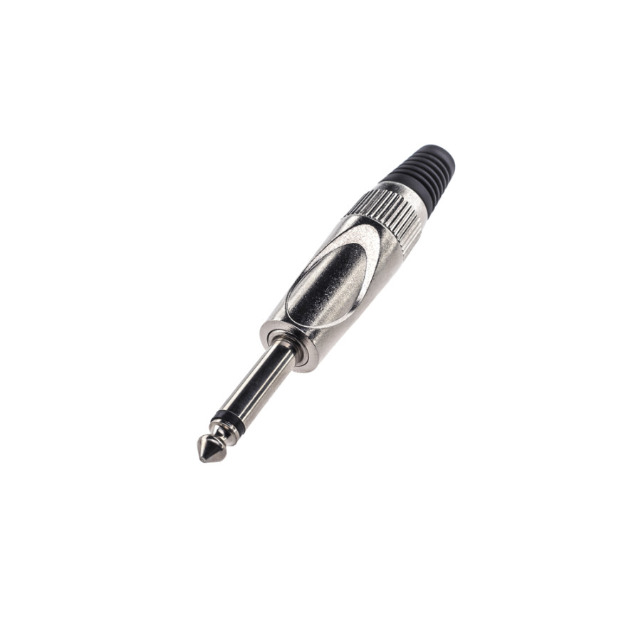 Maximum Acoustics JM65 – 6,3 mm (1/4") mono connector with silver plated contacts, metal housing and rubber cable holder. Color - metallic (body) / black (cable holder).