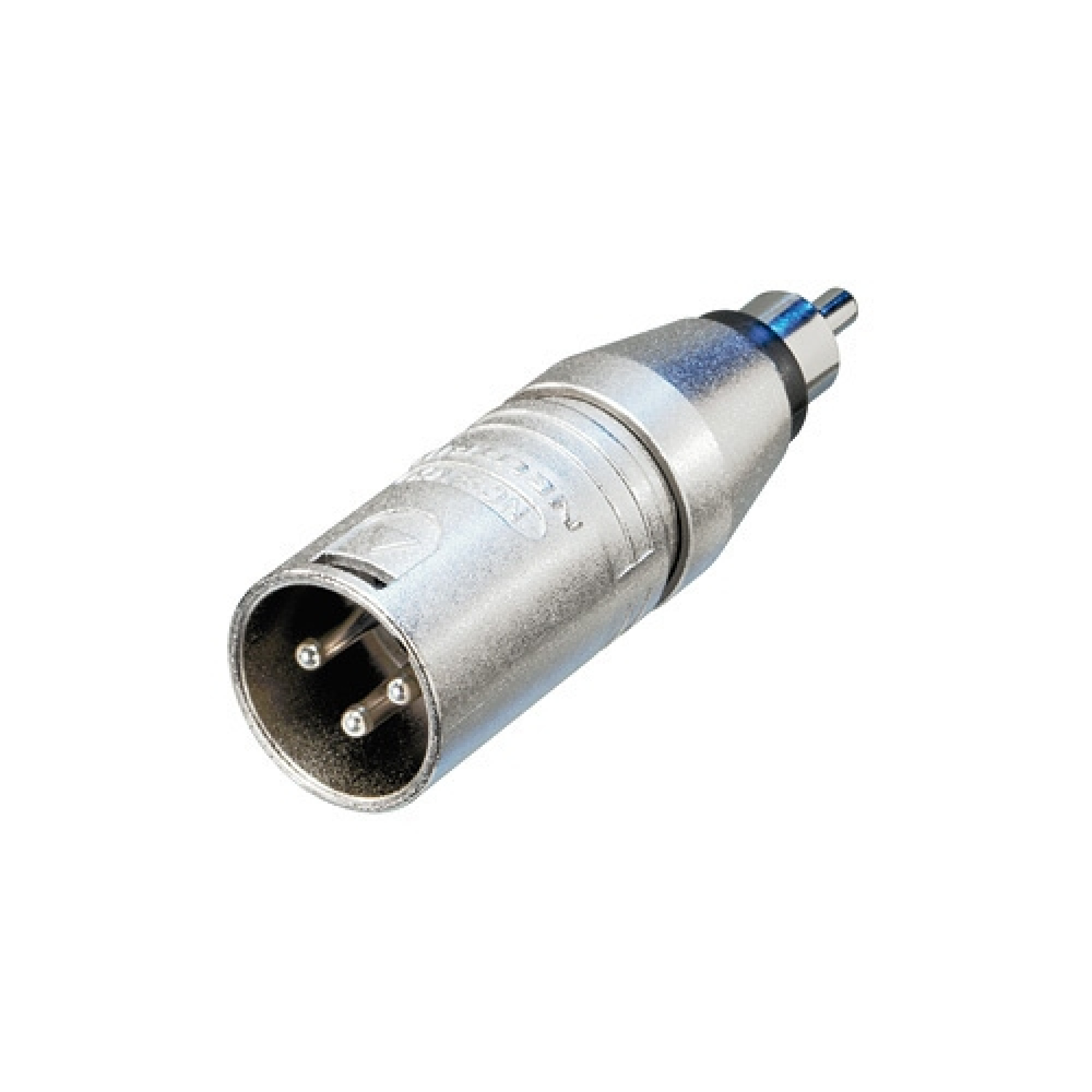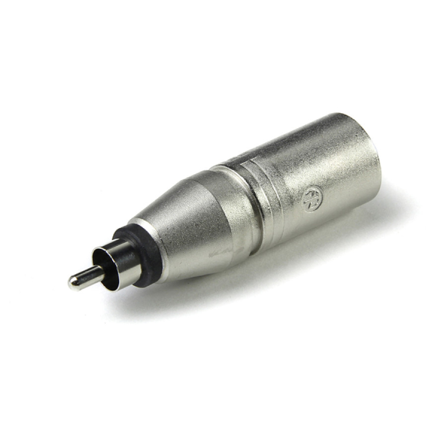 3 pole XLR male – RCA/phono plug. Wired according to IEC 268-12: Pin 2: signal, Pin 1 and 3: connected to ground.