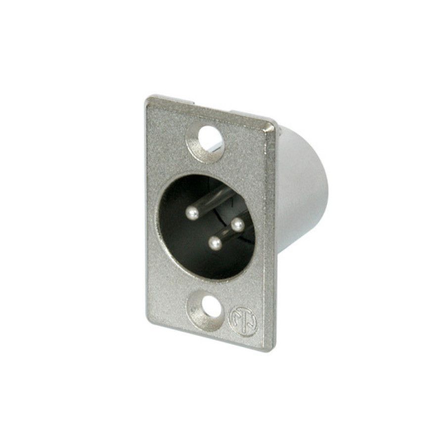 3 pole male receptacle, solder contacts, Nickel housing, silver contacts.