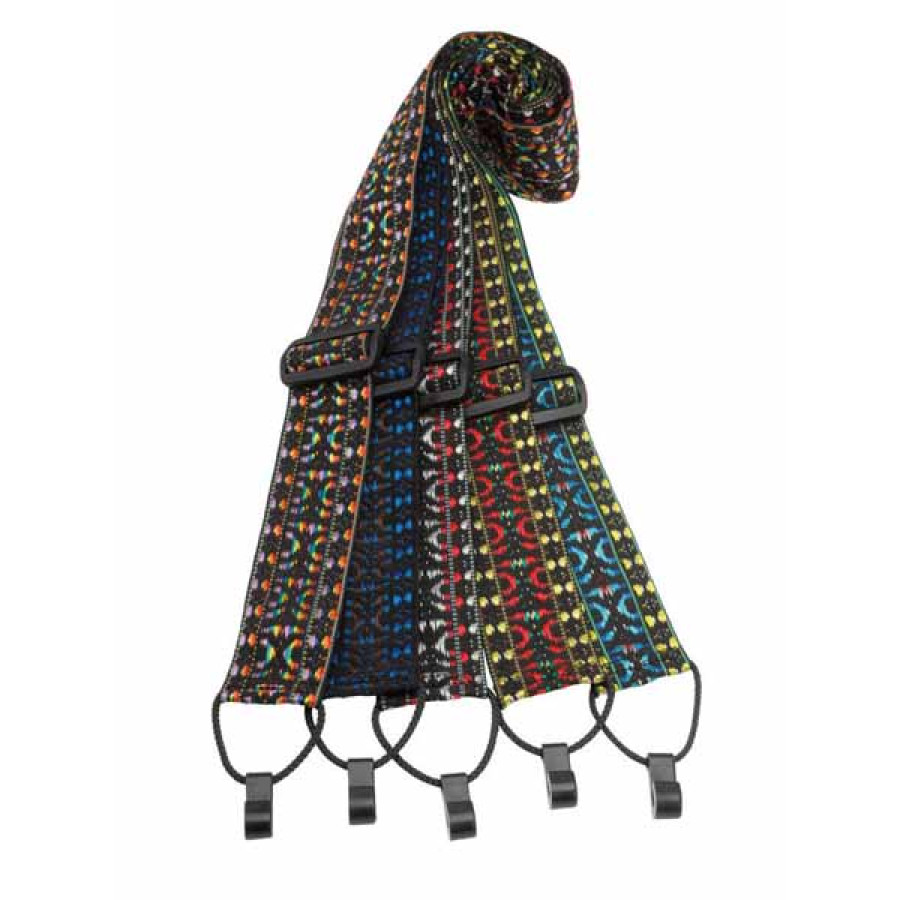Classical guitar strap. Woven, patterned, with vinyl backing.