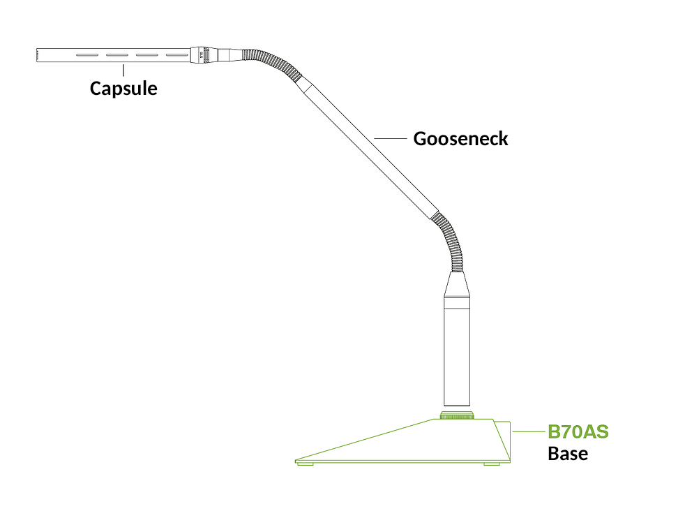 Robust microphone base with functional gooseneck microphone design with 3-pin XLR connector. Modern shapes effectively minimize structure-borne noise. The material is durable and has a non-reflective matte black finish. The base have a 3-pin XLR connector and a balanced 3-pin XLR output connector.