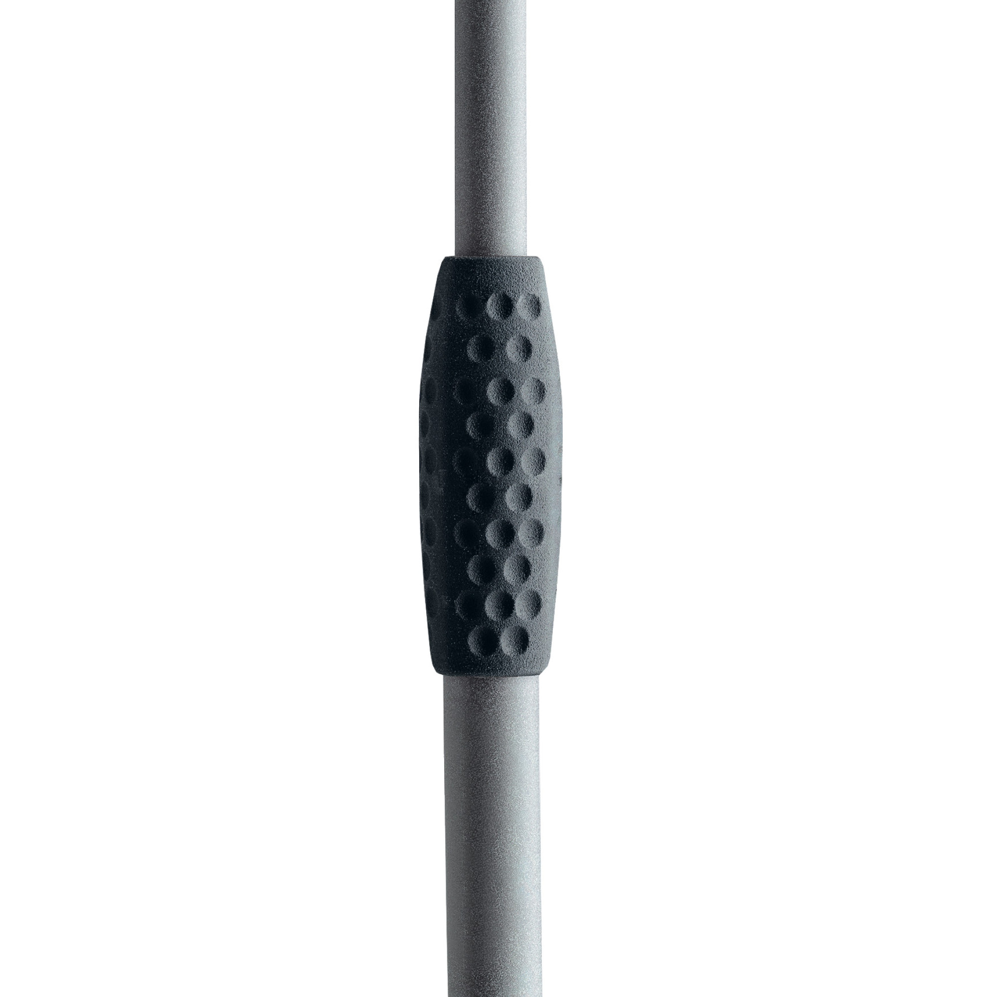 Consists of tubing assembly, boom arm and zinc die-cast base with long folding legs. Square swivel joint with large wing nut. Attractive gray Soft-Touch powder coating.