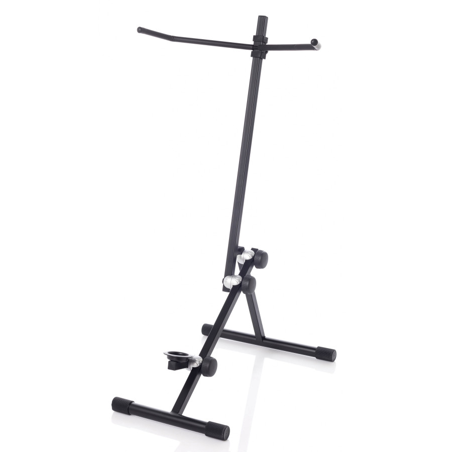 Double bass stand adjustable in height and tilt. Instrument housing covered with natural rubber.